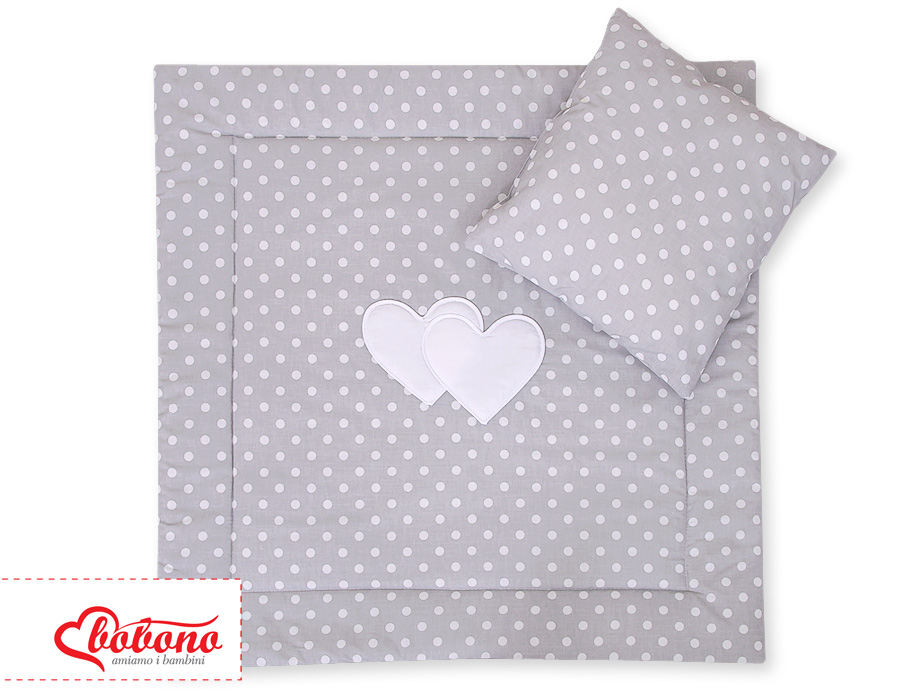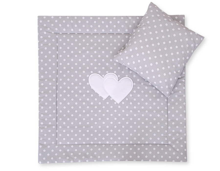 2 Pièces Coussin et Couverture pour Landau Bébé Gris à Pois Cœurs2 Pièces Coussin et Couverture pour Landau Bébé Gris à Pois Cœurs