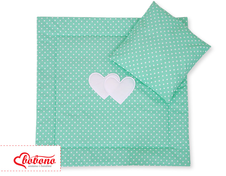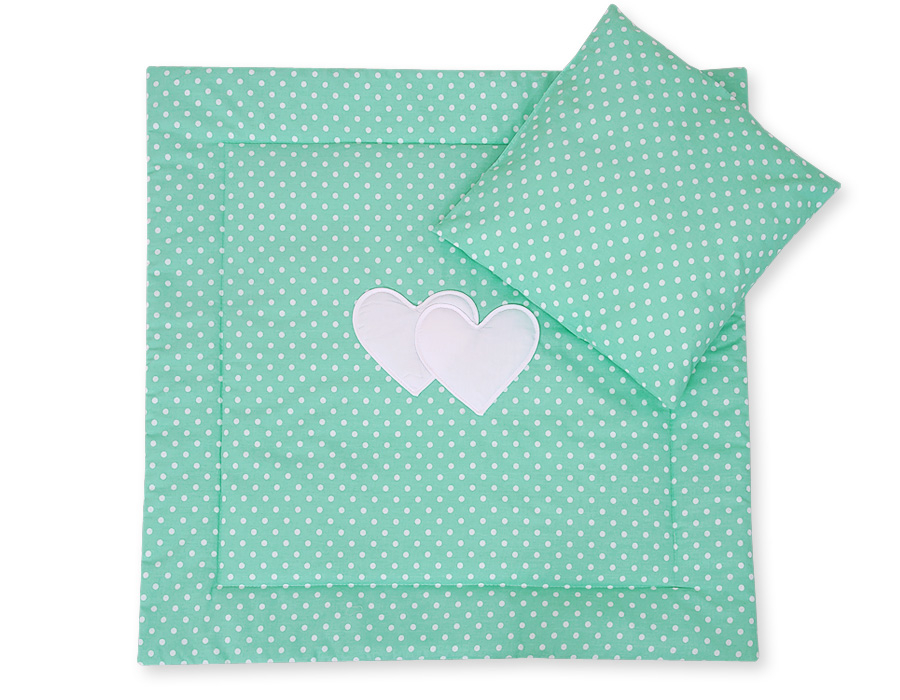 Bébé chambre » Linge de lit bébé » Linge de lit bébé Cœurs » Ensemble de landau » 2 Pièces Coussin et Couverture pour Landau Bébé Menthe à Pois Cœurs