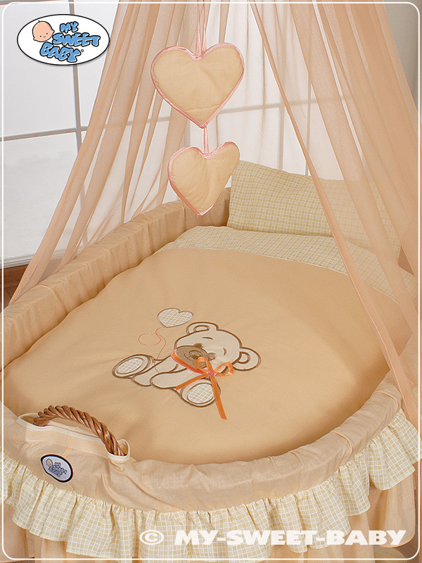 Bébé chambre » Berceau bébé » Berceau bébé à roulettes » Complet textile pour berceau osier avec ciel » 4 pcs Ensemble Linge pour Berceau de Bébé