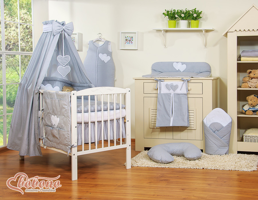 Ensemble de linge de lit pour bébé 5 pcs avec baldaquin - Collection Coeur