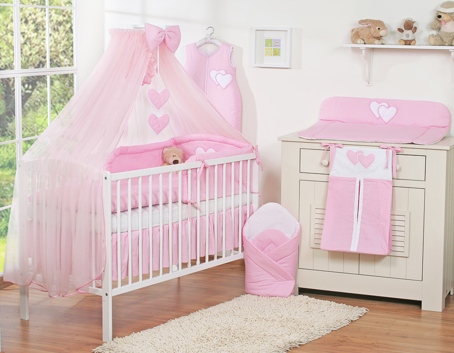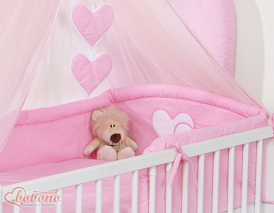 Bébé chambre » Linge de lit bébé » Linge de lit bébé Cœurs » Linge de lit bébé 120cm Cœurs » Ensemble de linge de lit 5 pcs avec moustiquaire » 5 pcs Ensemble pour Lit Bébé avec Moustiquaire Rose Cœurs