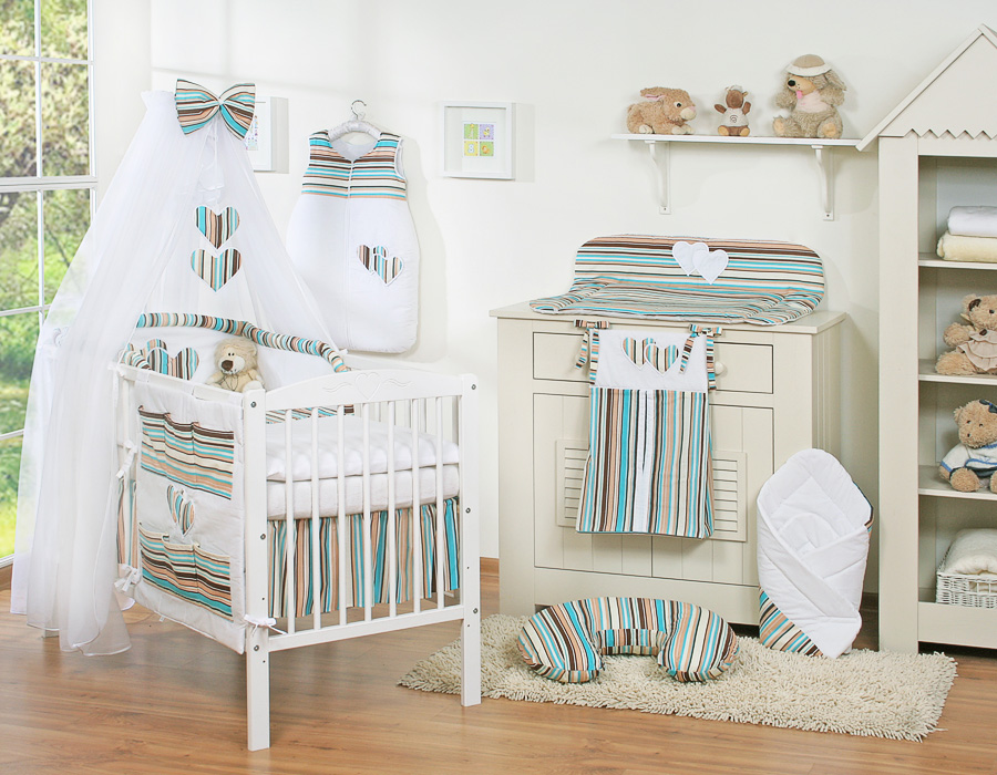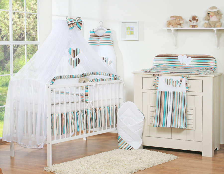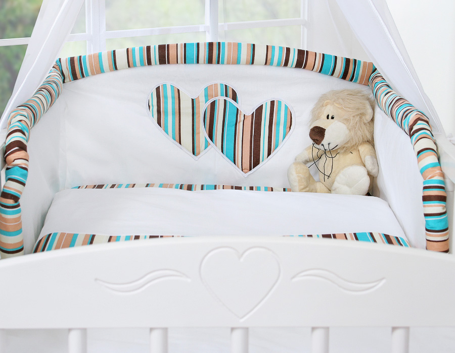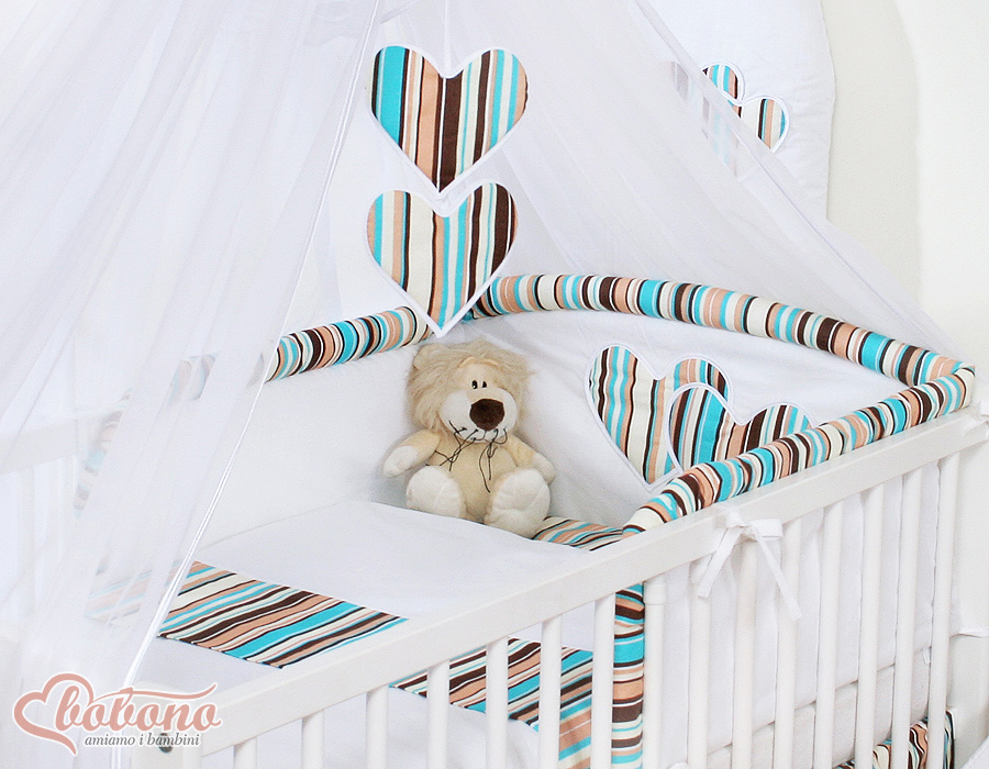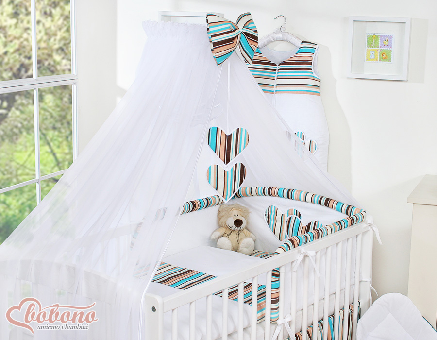 Bébé chambre » Linge de lit bébé » Linge de lit bébé Cœurs » Linge de lit bébé 120cm Cœurs » Ensemble de linge de lit 7 pcs avec moustiquaire » 7pcs Ensemble Lit Bébé Ciel Tour de Lit Rayures Cœurs