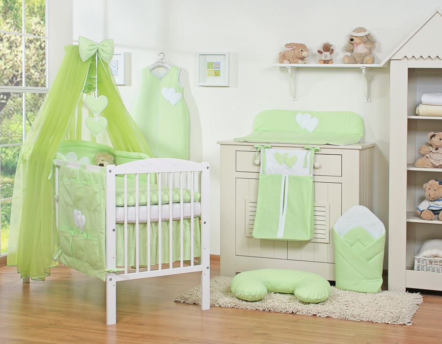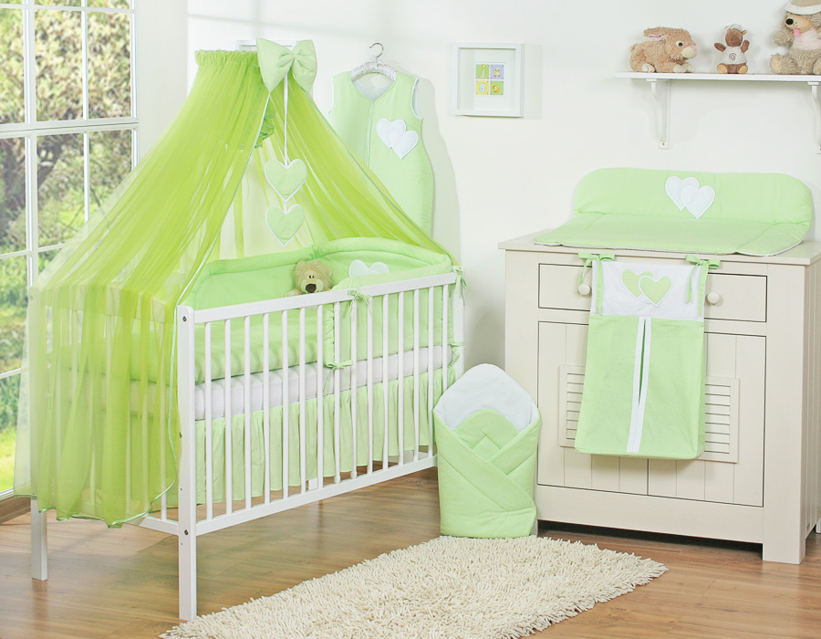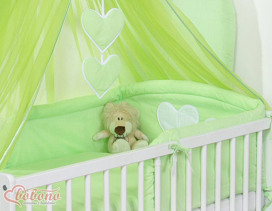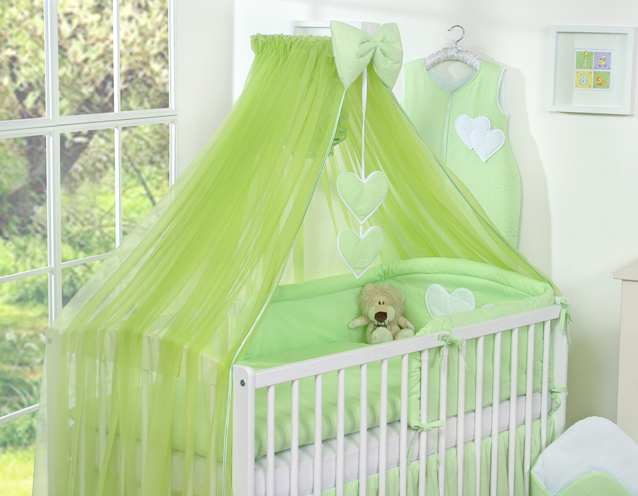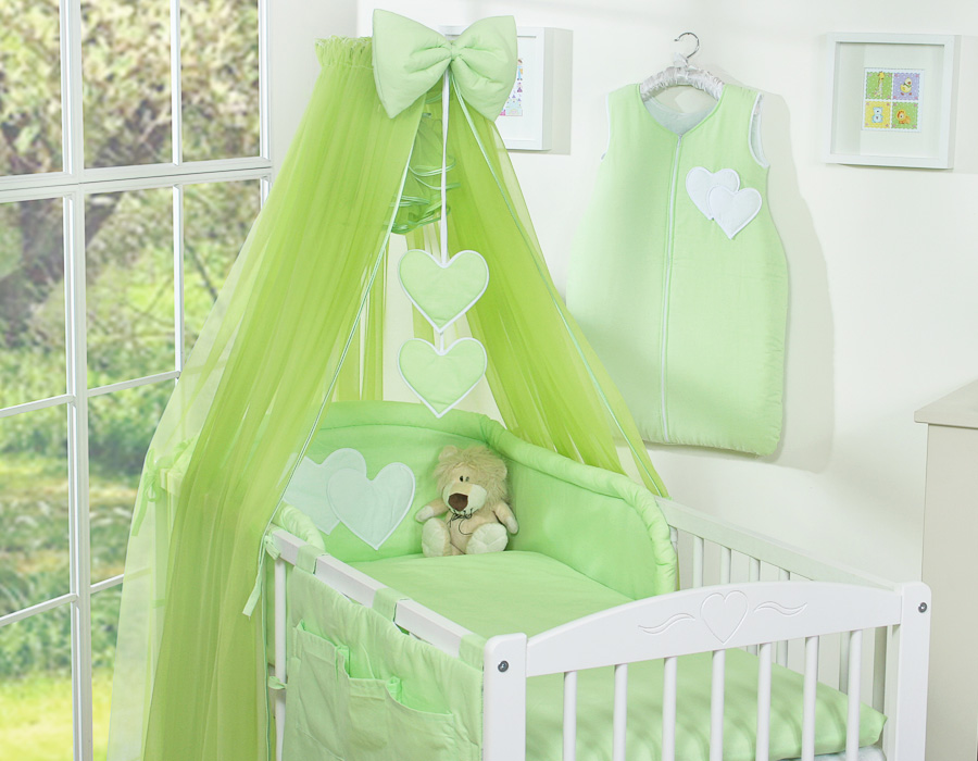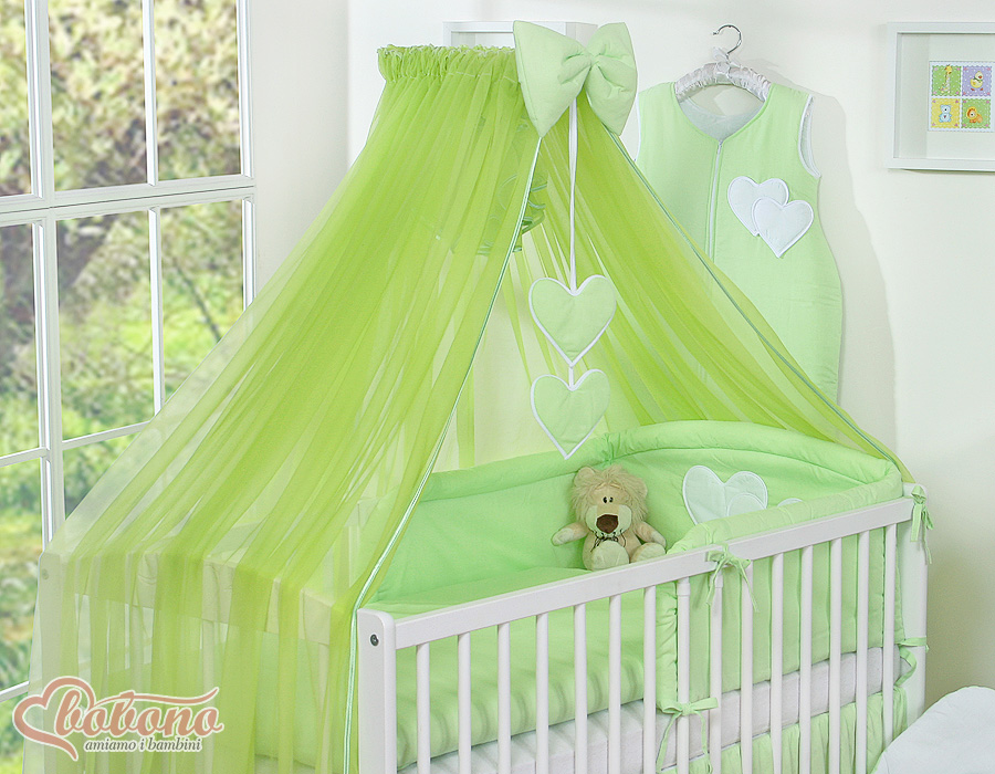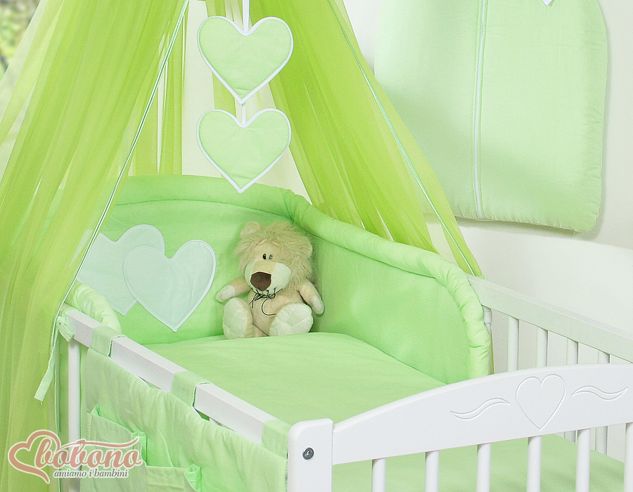 Bébé chambre » Linge de lit bébé » Linge de lit bébé Cœurs » Linge de lit bébé 120cm Cœurs » Ensemble de linge de lit 7 pcs avec moustiquaire » 7pcs Ensemble Lit Bébé Ciel Tour de Lit Vert Cœurs