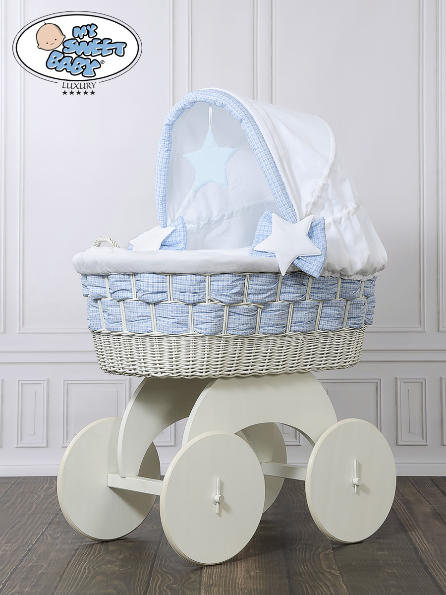 Berceau Bébé Osier Complet Textile avec Canopy Isabella