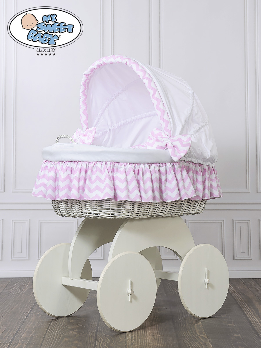 Bébé chambre » Berceau bébé » Berceau bébé My Sweet Baby Luxury » Berceaux avec canopy en osier » Berceau bébé avec canopy en osier » Berceau Sur Roues en Osier et Bois Blanc
