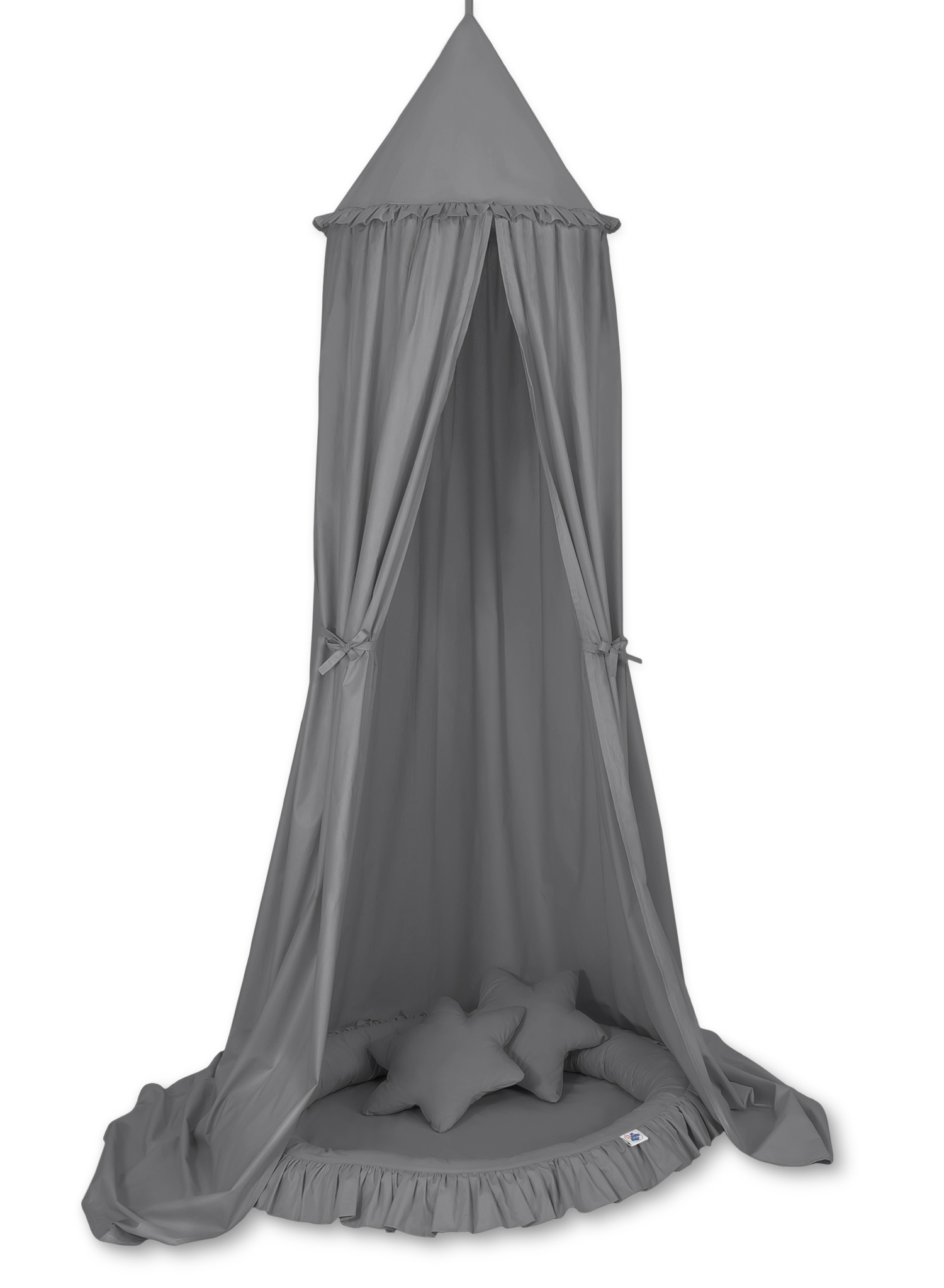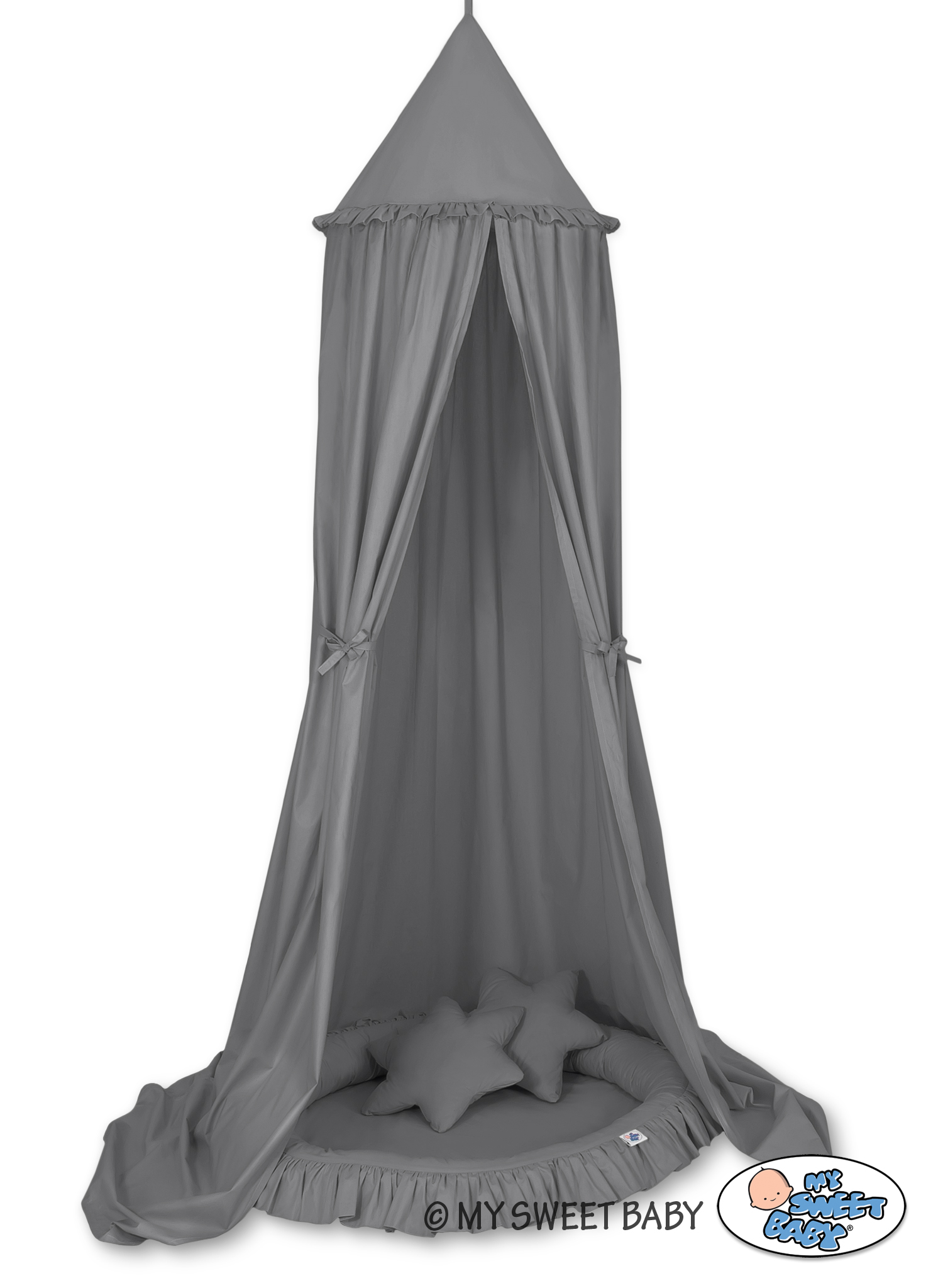 Bébé chambre » Ciels à suspendre au plafond - Ensembles » Ensemble : Baldaquin suspendu + nid à volants + oreillers » Ciel de Lit à Suspendre Au Plafond avec Nid à Volants et Coussins Anthracite
