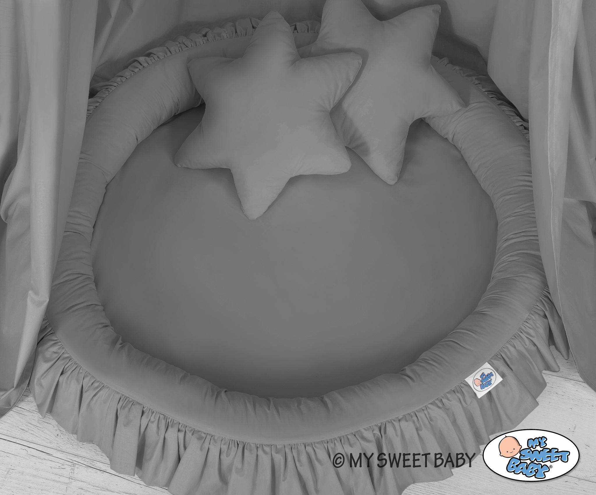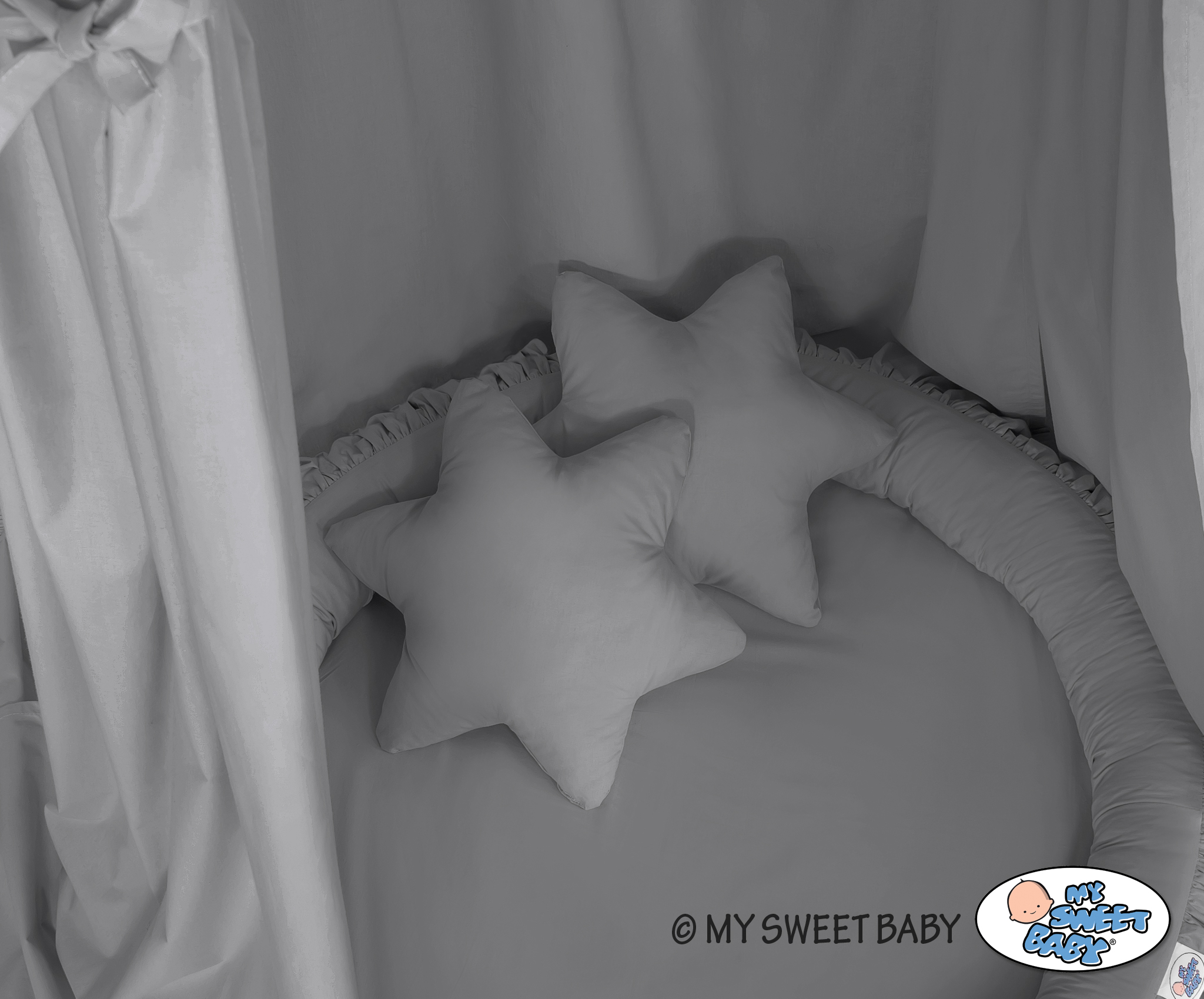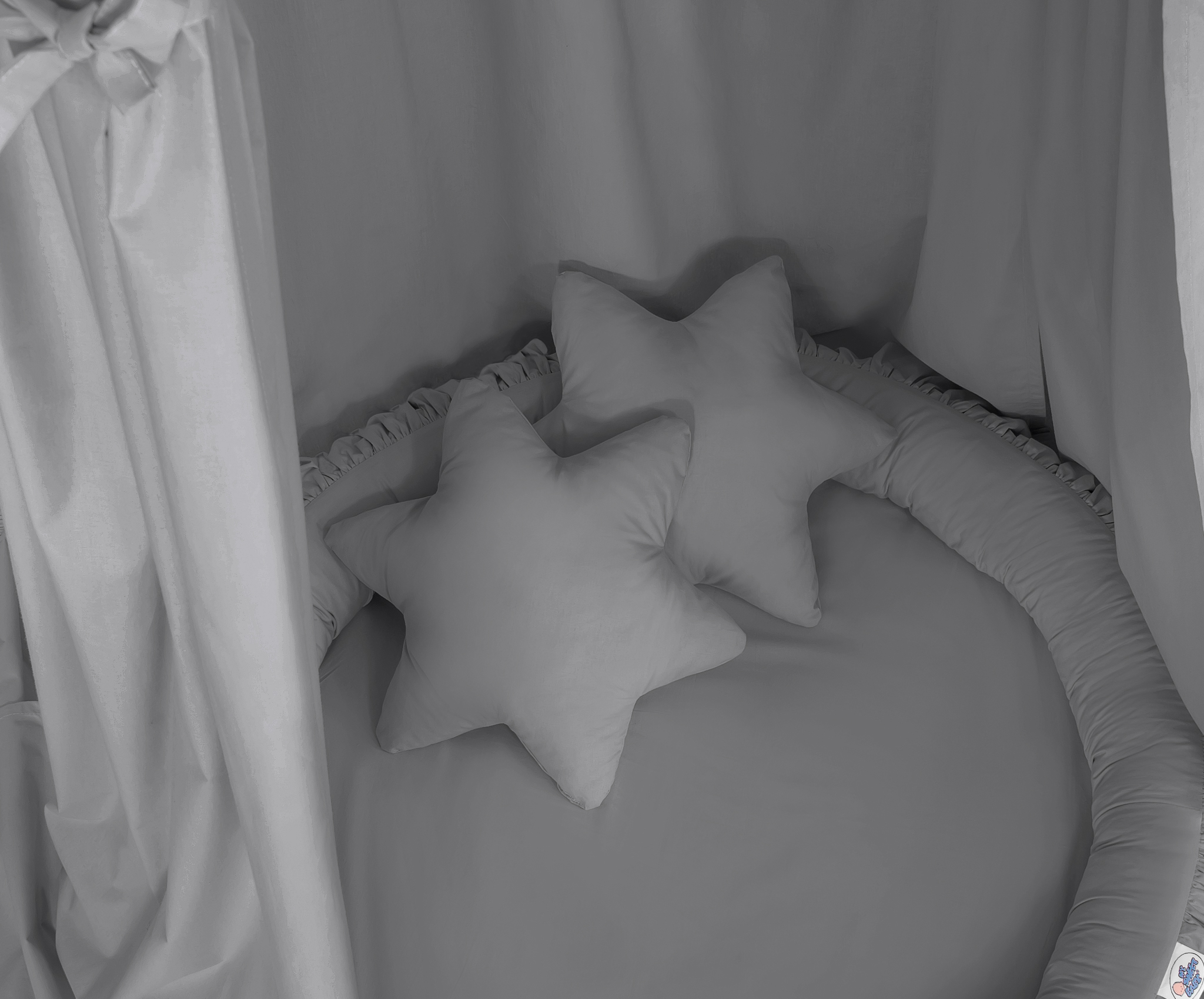 Ensemble : Baldaquin suspendu + nid à volants + oreillers - stars - 2 pcs