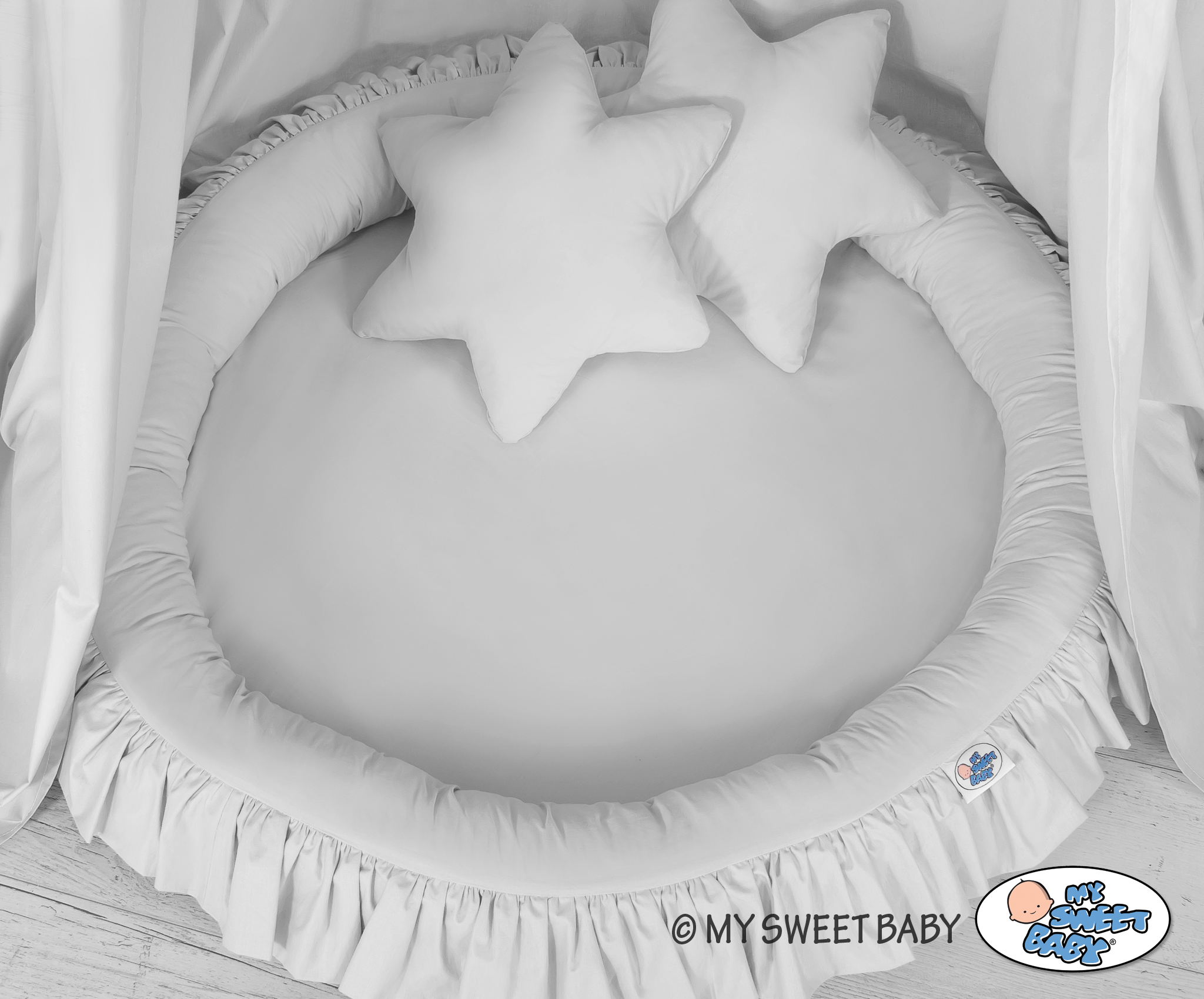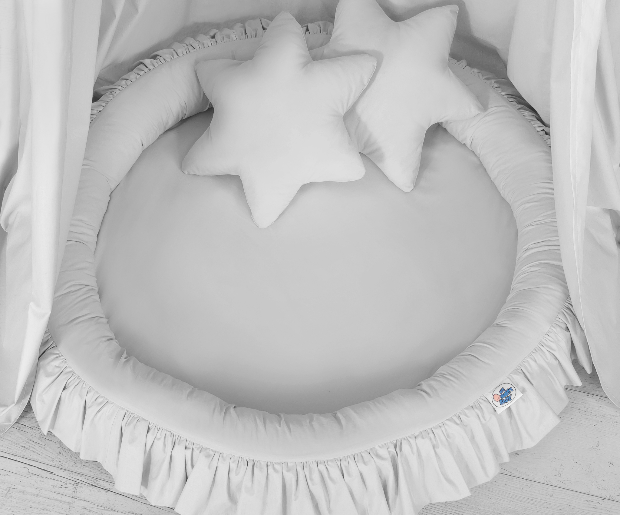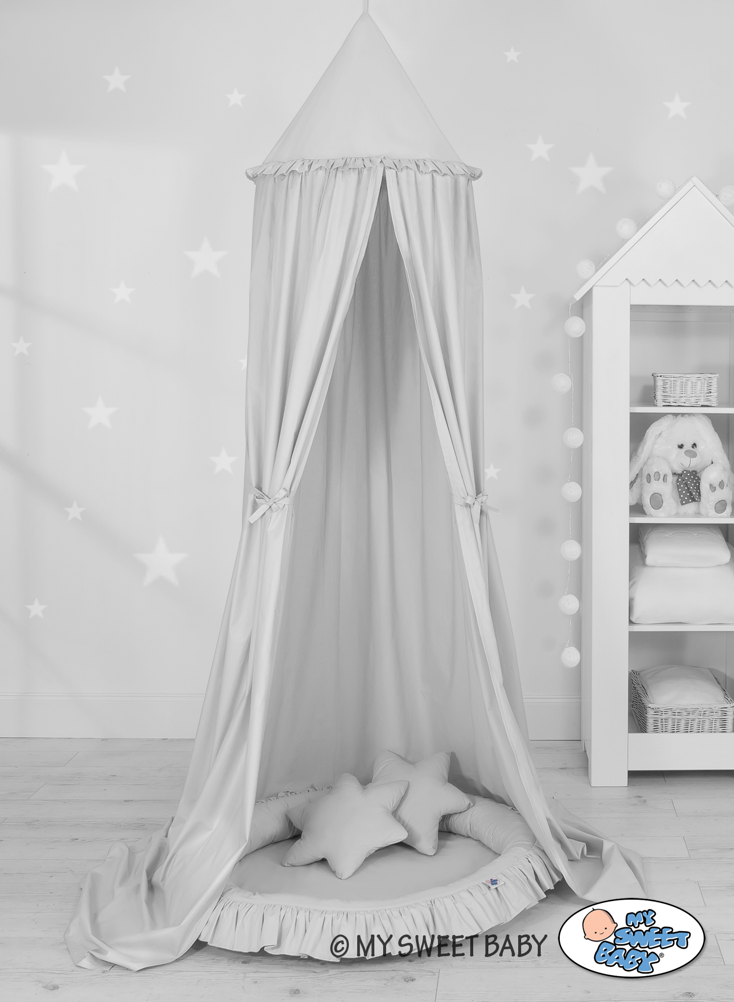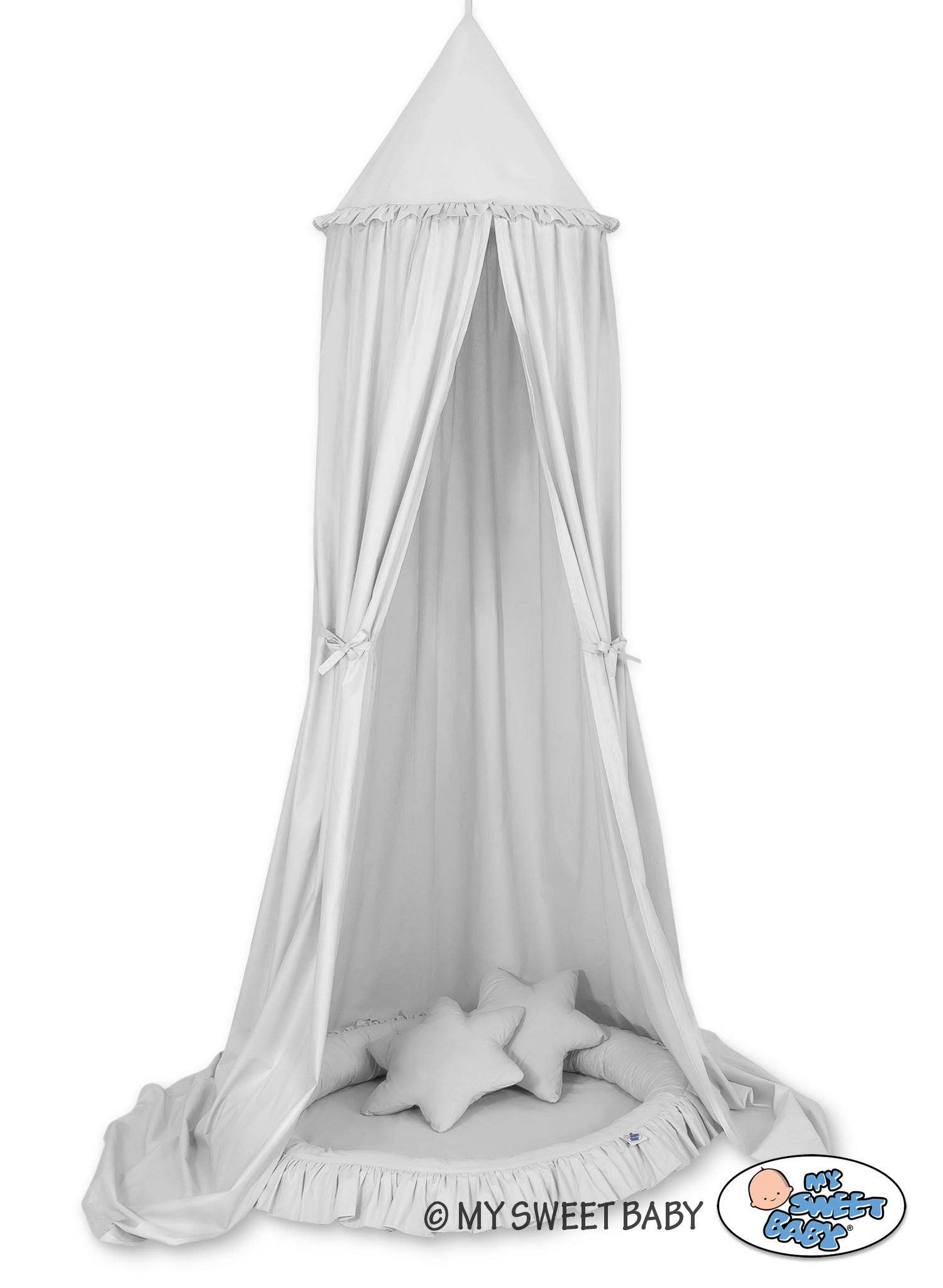 Bébé chambre » Ciels à suspendre au plafond - Ensembles » Ensemble : Baldaquin suspendu + nid à volants + oreillers » Ciel de Lit à Suspendre Au Plafond avec Nid à Volants et Coussins Gris