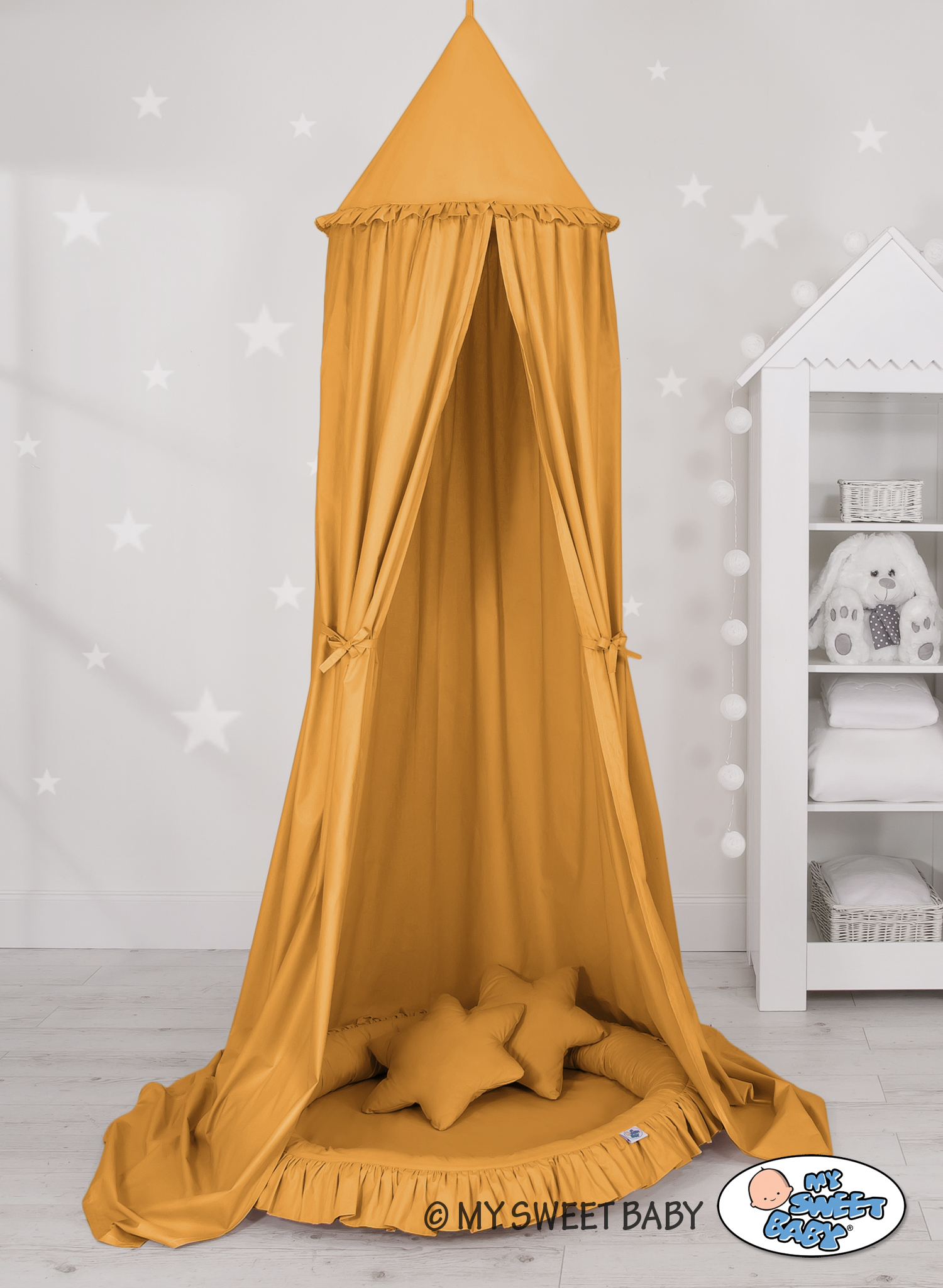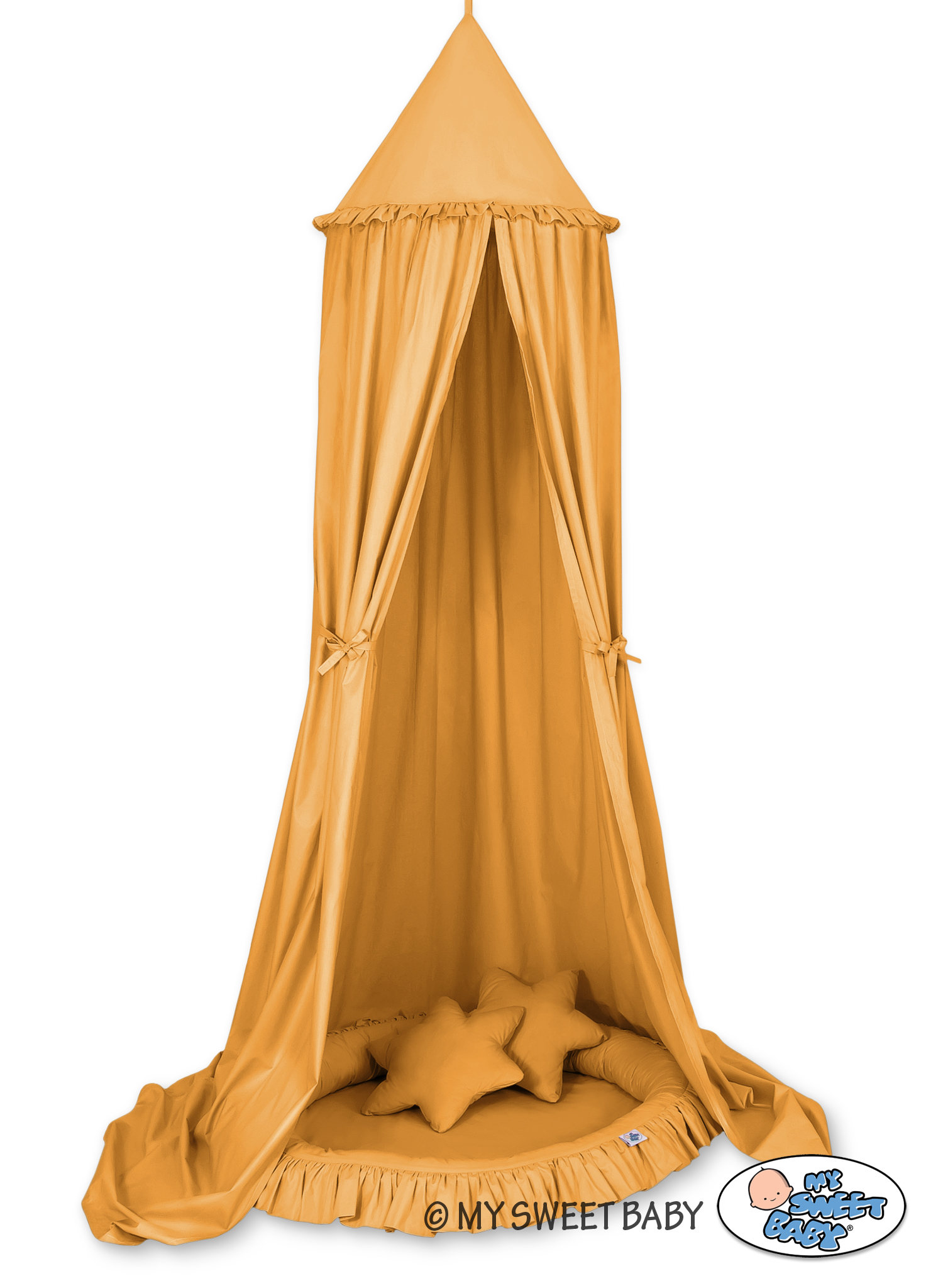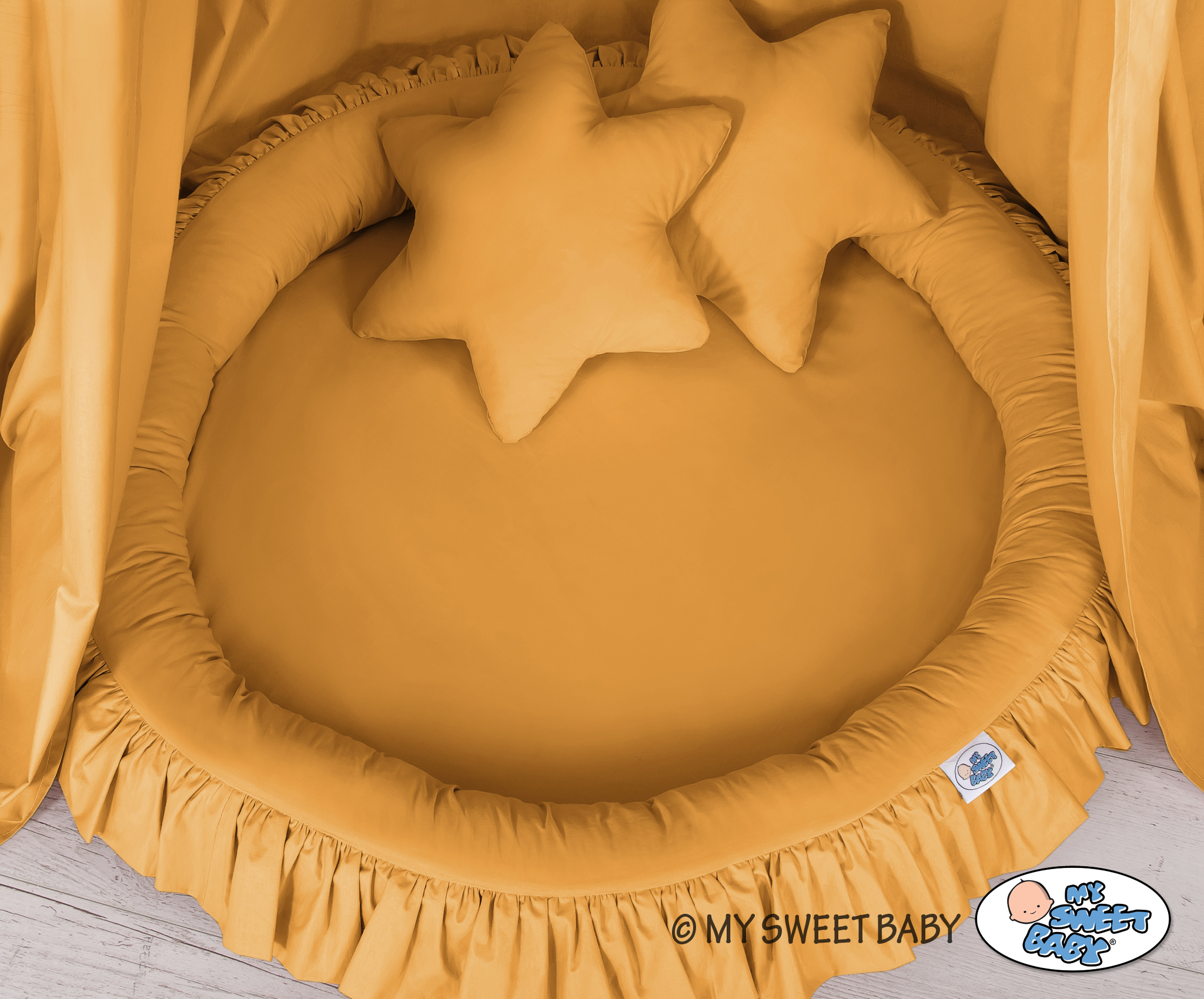 Bébé chambre » Ciels à suspendre au plafond - Ensembles » Ensemble : Baldaquin suspendu + nid à volants + oreillers » Ciel de Lit à Suspendre Au Plafond avec Nid à Volants et Oreillers Miel