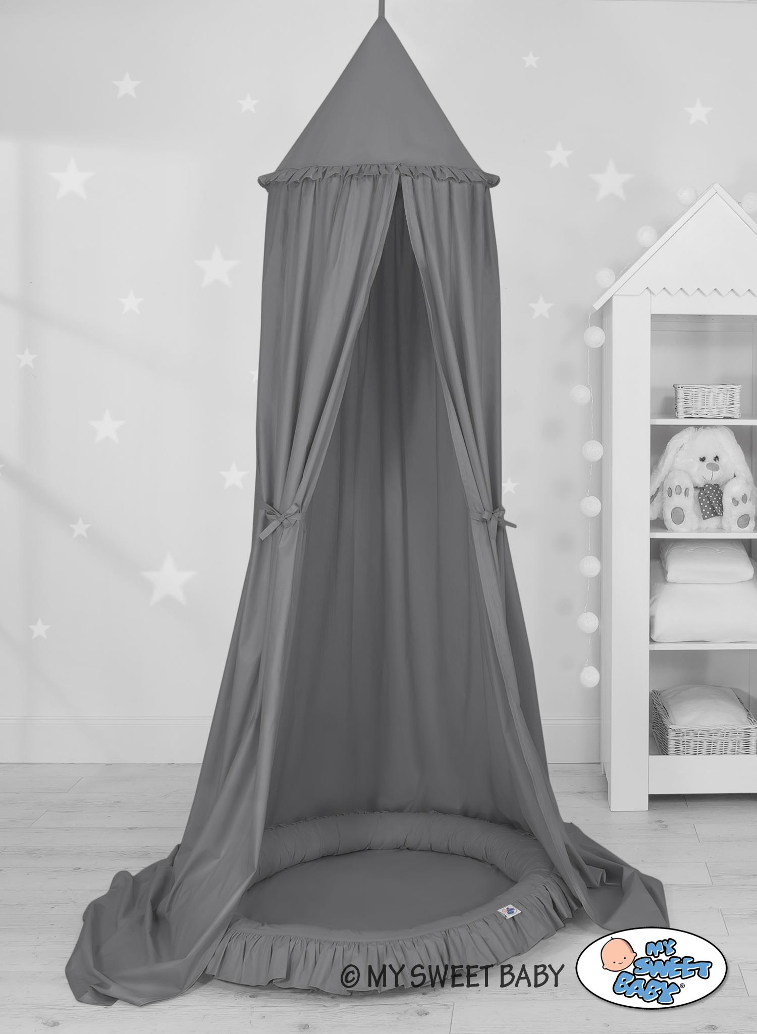 Bébé chambre » Ciels à suspendre au plafond - Ensembles » Ciels à suspendre au plafond avec nid à volants » Ciel de Lit à Suspendre Au Plafond avec Nid Anthracite