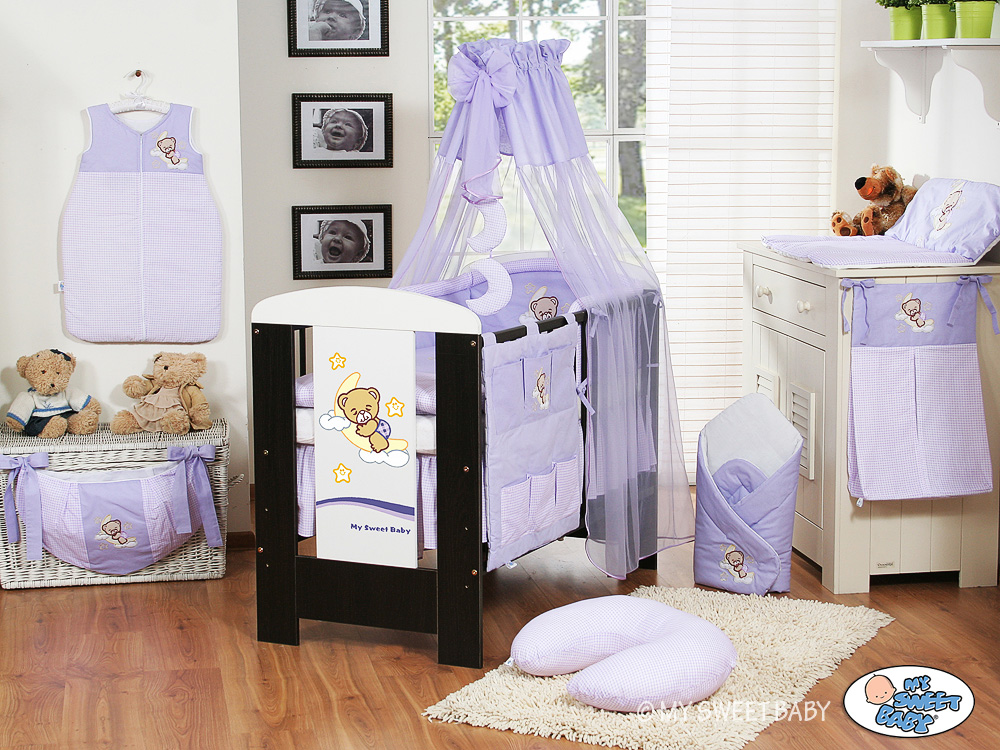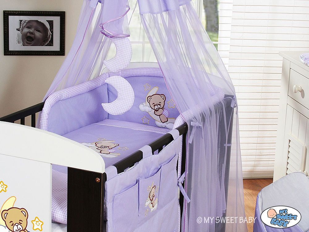 Bébé chambre » Linge de lit bébé » Linge de lit bébé Bonne Nuit » Ciel de lit bébé avec support » Ciel de Lit Bébé avec Fleche Lila Voile Bonne Nuit