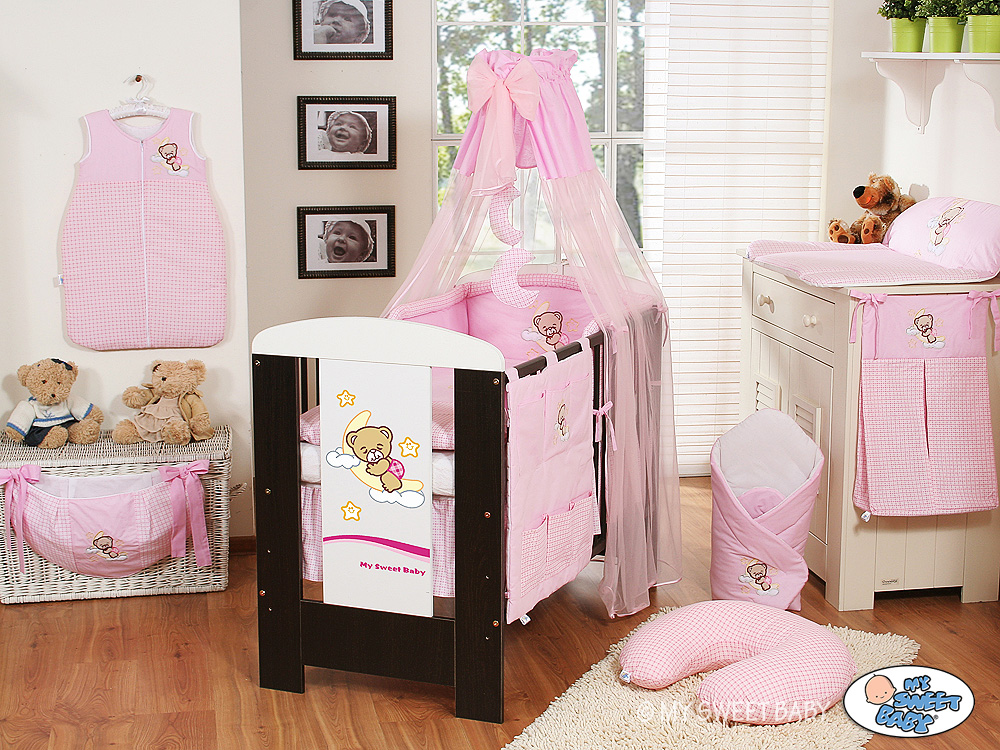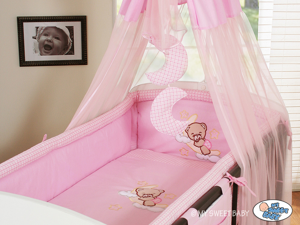 Bébé chambre » Linge de lit bébé » Linge de lit bébé Bonne Nuit » Ciel de lit bébé avec support » Ciel de Lit Bébé avec Fleche Rose Voile Bonne Nuit