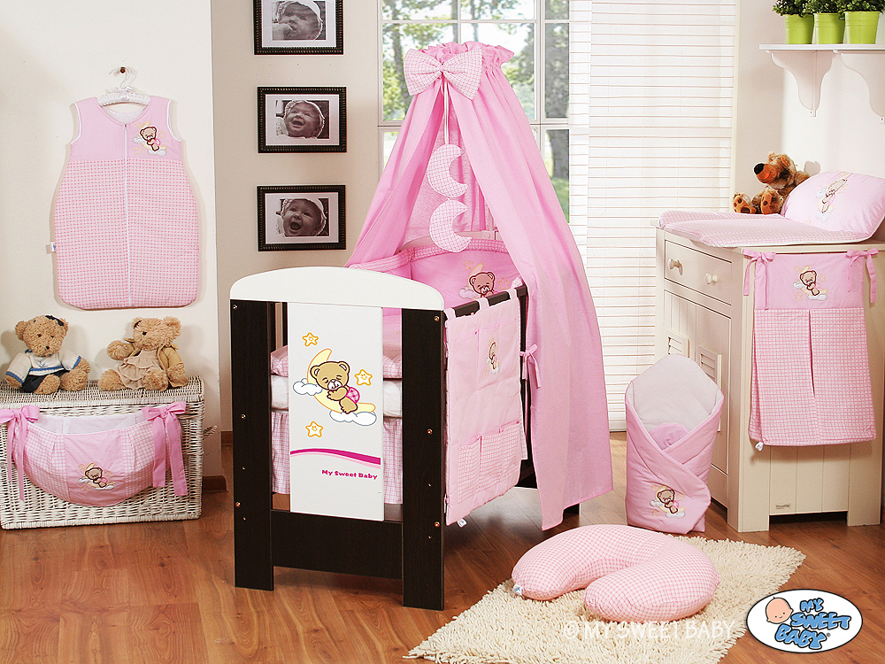 Bébé chambre » Linge de lit bébé » Linge de lit bébé Bonne Nuit » Ciel de lit bébé avec support » Ciel de Lit Bébé avec Support Rose Bonne Nuit