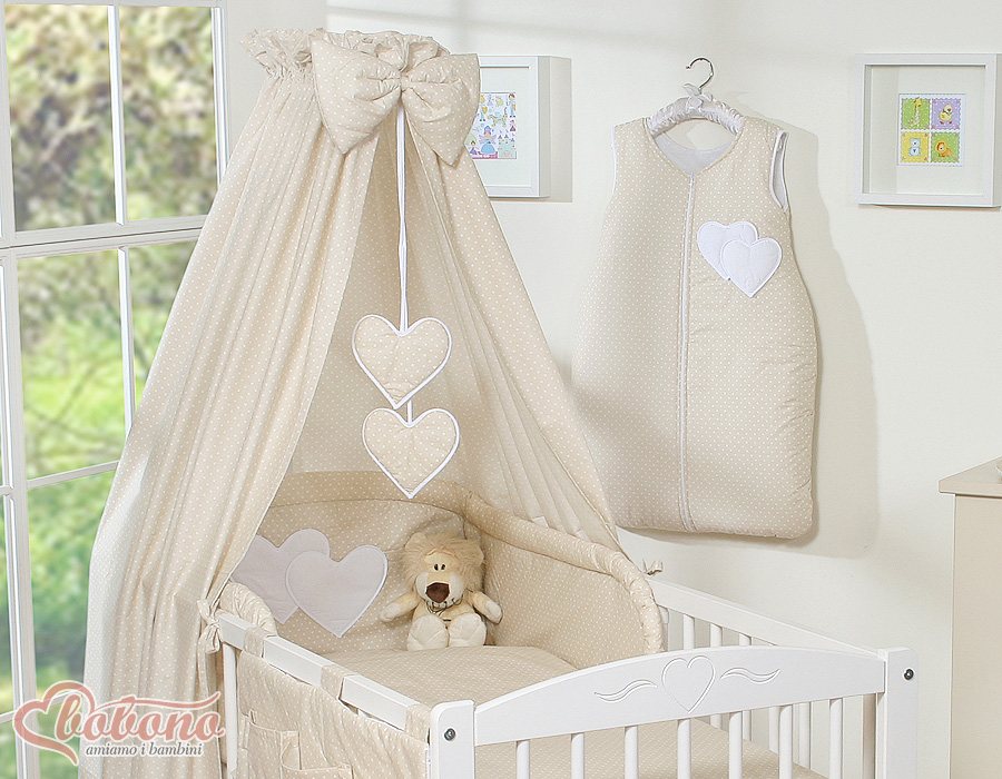 Bébé chambre » Linge de lit bébé » Linge de lit bébé Cœurs » Ciels de lit bébé en tissu Coeurs » Ciel de Lit Bébé en Tissu Beige à Pois Cœurs