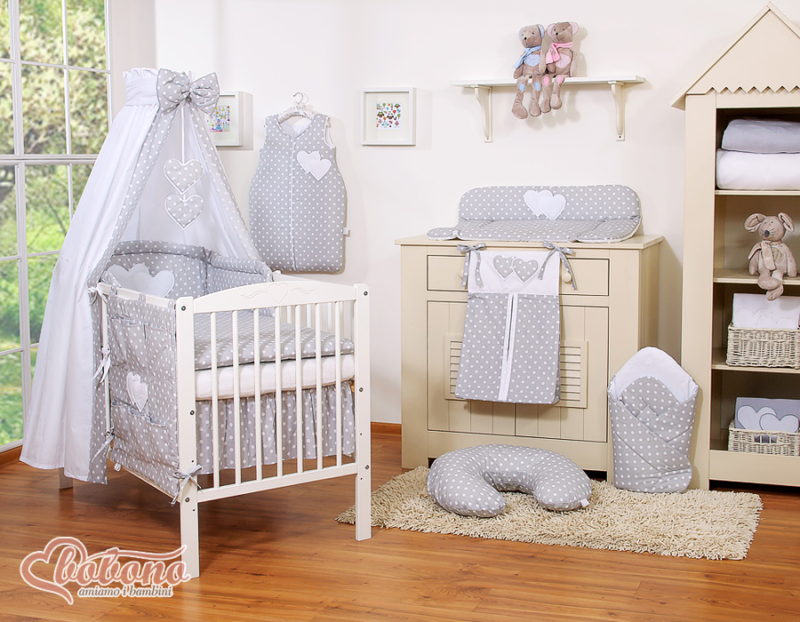 Bébé chambre » Linge de lit bébé » Linge de lit bébé Cœurs » Ciels de lit bébé en tissu Coeurs » Ciel de Lit Bébé en Tissu Gris à Pois Cœurs