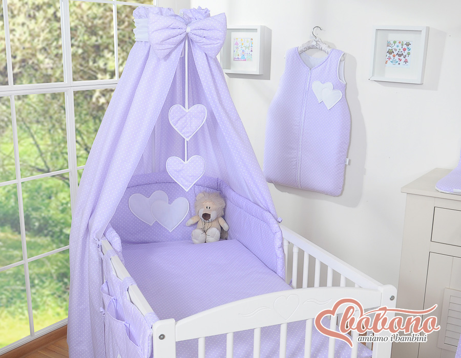 Bébé chambre » Linge de lit bébé » Linge de lit bébé Cœurs » Ciels de lit bébé en tissu Coeurs » Ciel de Lit Bébé en Tissu Lila à Pois Cœurs