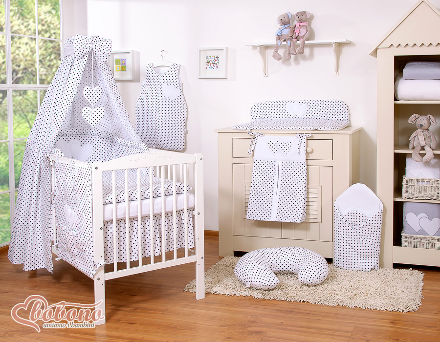 Bébé chambre » Linge de lit bébé » Linge de lit bébé Cœurs » Ciels de lit bébé en tissu Coeurs » Ciel de Lit Bébé en Tissu Noir à Pois Cœurs