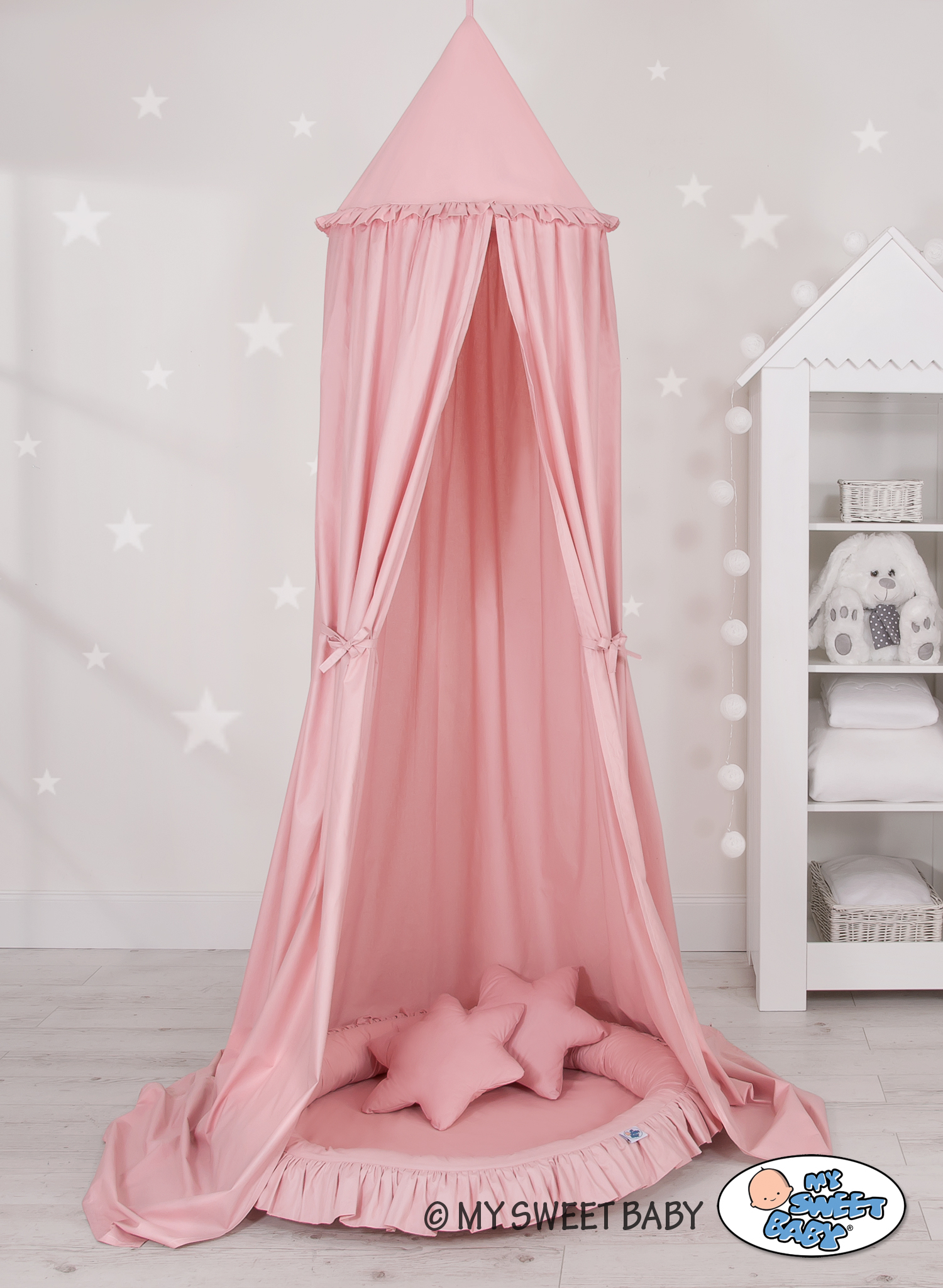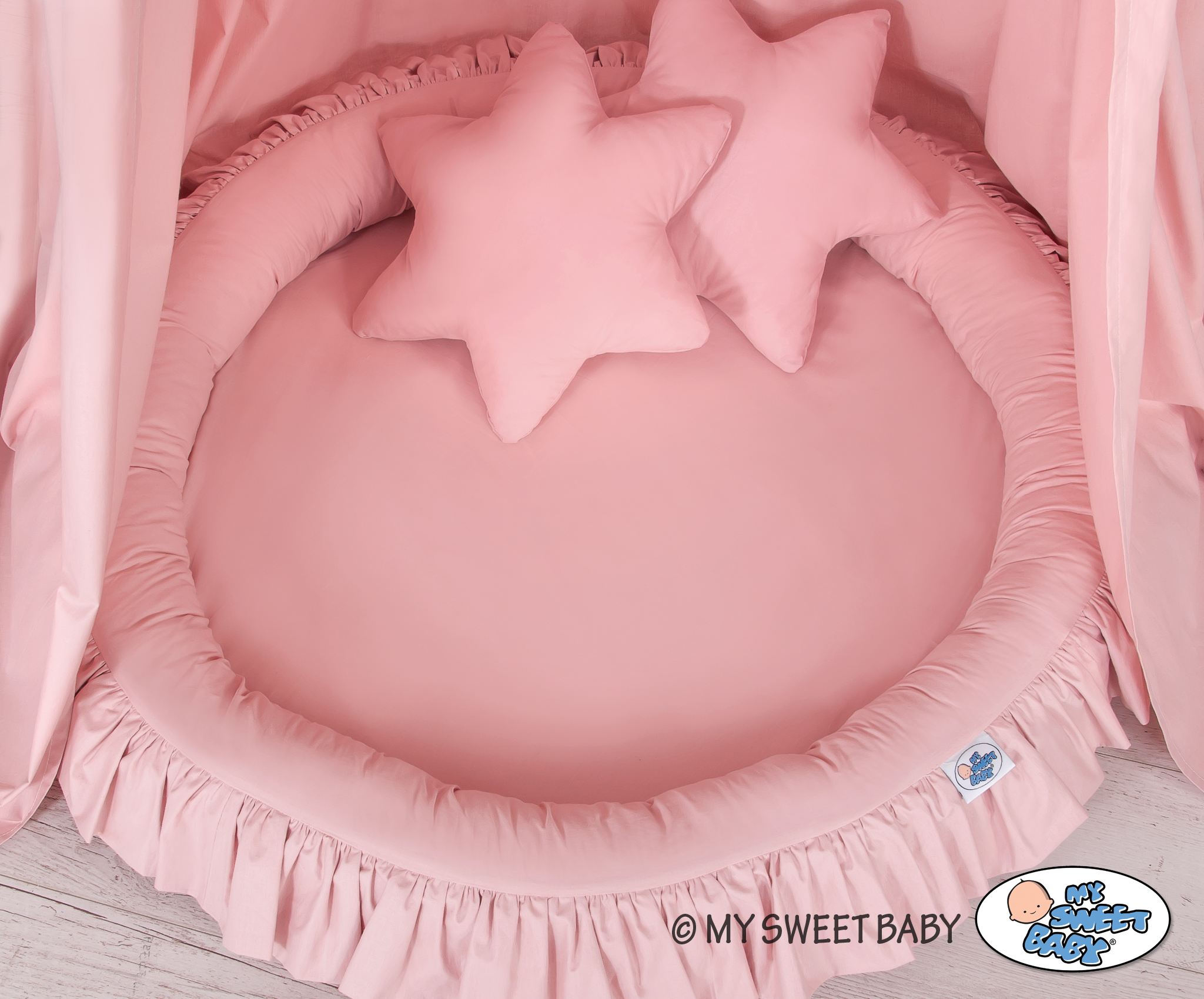 Bébé chambre » Ciels à suspendre au plafond - Ensembles » Ensemble : Baldaquin suspendu + nid à volants + oreillers » Ciel de Lit Bébé Enfant à Suspendre Au Plafond avec Nid et Oreillers Rose Poussiéreux