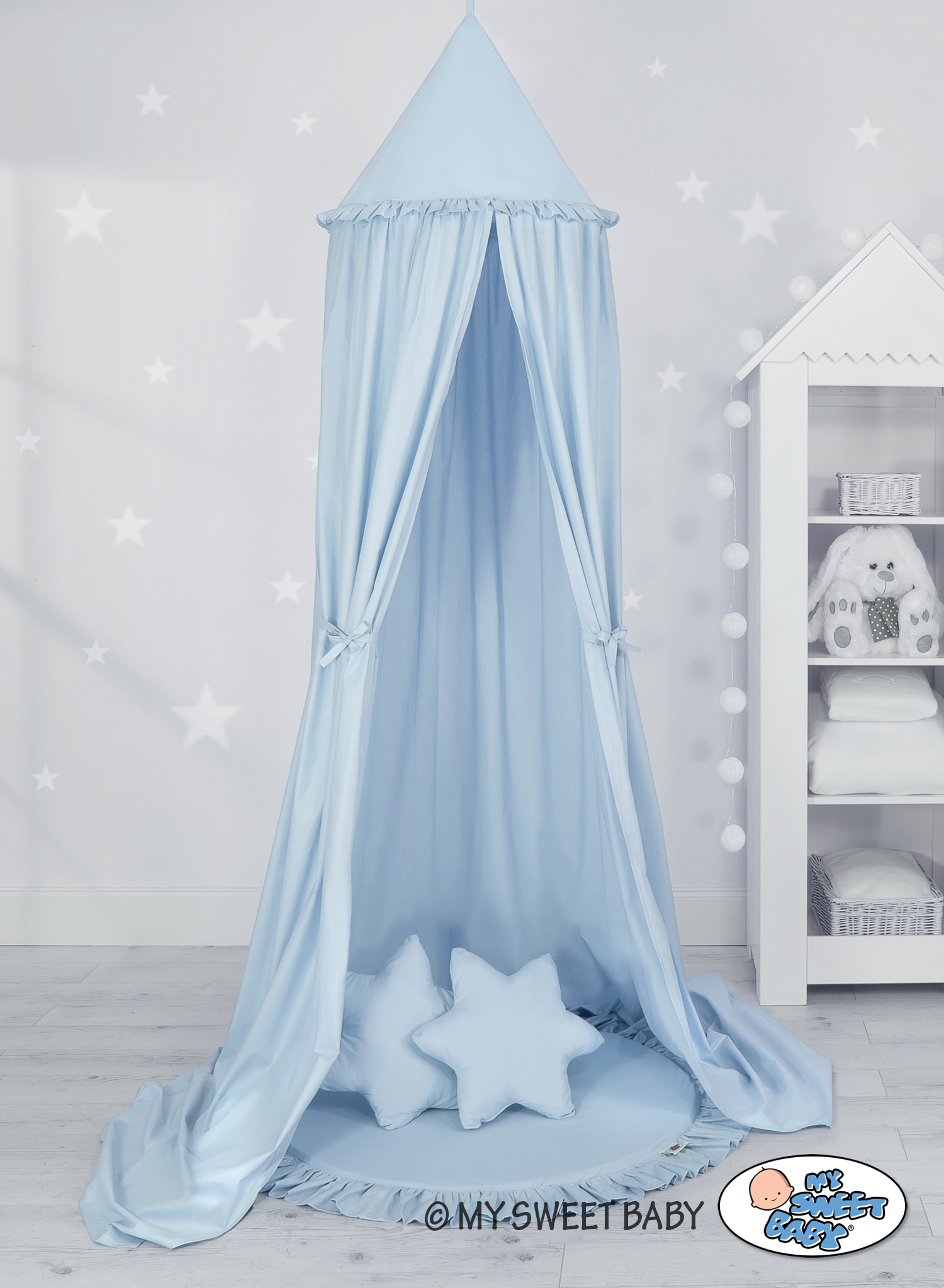 Ciel de Lit Bébé Enfant à Suspendre Au Plafond avec Tapis et Coussins Bleu