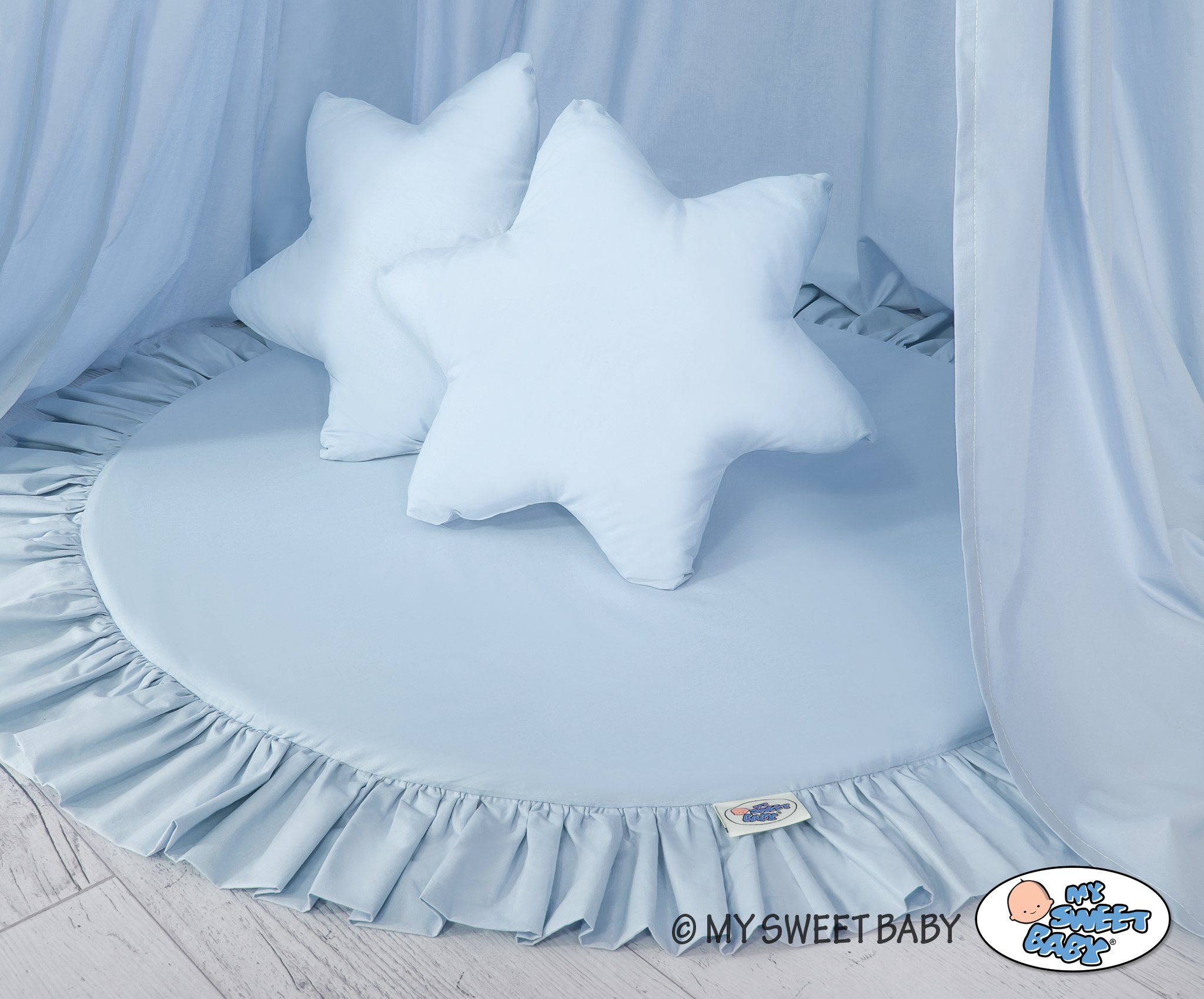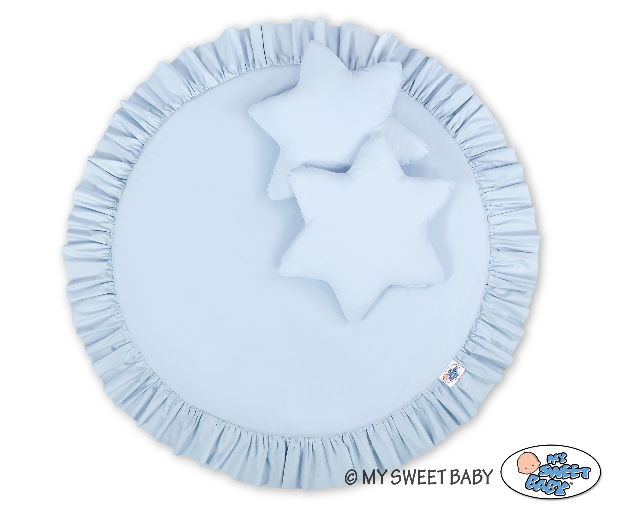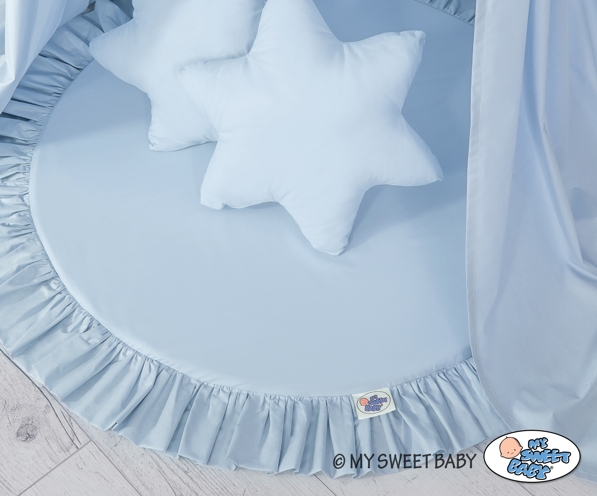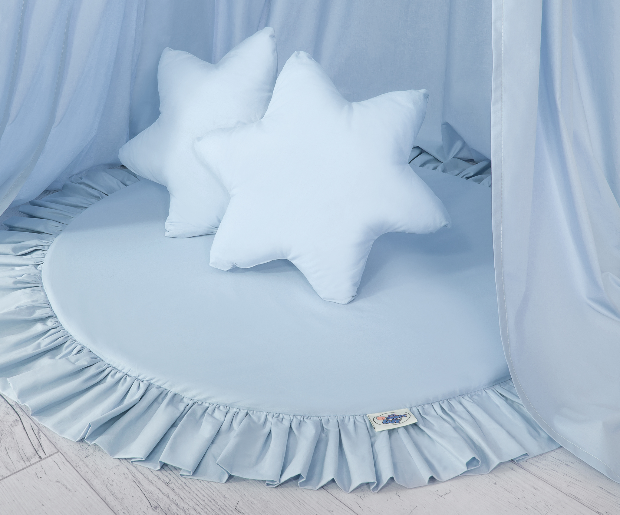 Un tapis de jeu de sol avec des volants. Il peut être utilisé comme tapis, tapis de jeu ou comme tapis de sol pour le long baldaquin. Dès les premiers jours de la vie, il peut être utilisé comme lieu de repos ou comme tapis de jeu pour le temps du passage sur le ventre. Il a un rembourrage souple qui l'isole parfaitement du sol dur et froid. La couverture est fabriquée en coton 100% certifié OKOTEX. Le dessous du tapis de jeu est fait d'un matériau moderne, antiallergique et attesté. Le fond peut être retiré et la couverture peut être lavée.
