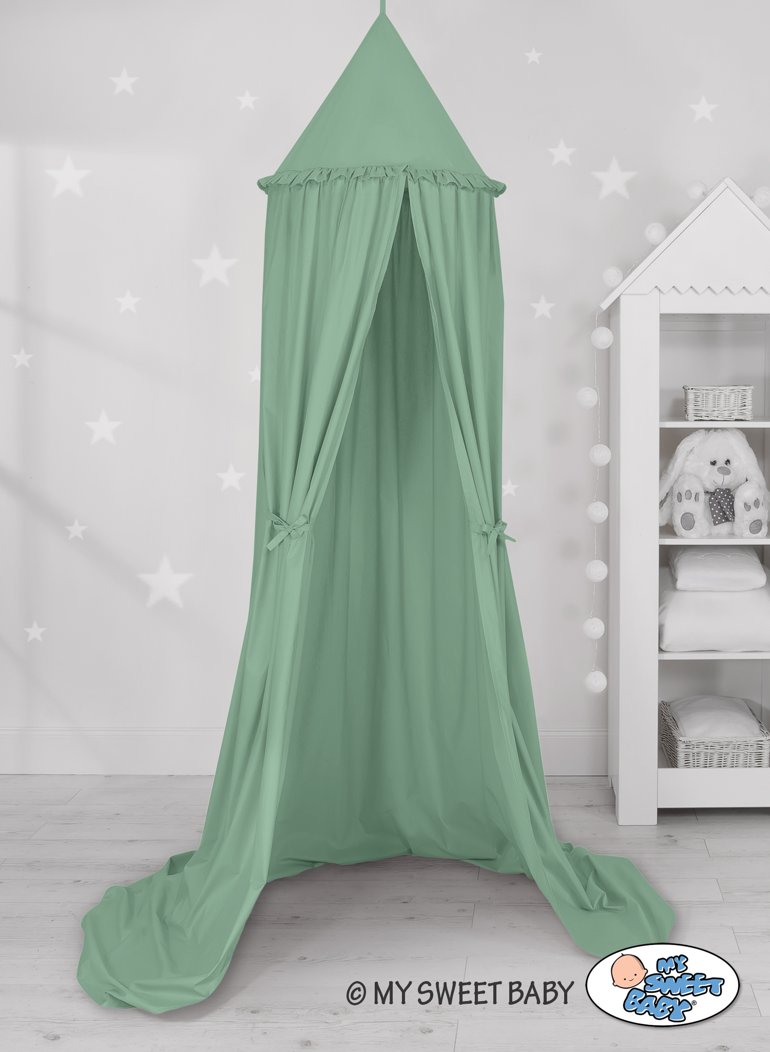 Un long baldaquin suspendu efficace. Un bel élément dans la chambre des enfants. Il peut être utilisé comme décoration unique d'un lit de bébé, tout comme il peut créer un endroit merveilleux pour jouer. La suspension au-dessus du lit protège contre les excès de lumière et de bruit, créant ainsi un endroit confortable et sûr pour se reposer à l'intérieur du lit. Le baldaquin peut facilement être fixé au plafond. La longueur de 260 cm permet de disposer les extrémités sur le sol. Cela crée une cachette parfaite et une aire de jeu pour les enfants plus âgés. Le baldaquin est fabriqué en tissu 100% coton certifié Okotex. Sur les côtés, il y a des rubans pratiques pour attacher le baldaquin et créer une belle tente. Le bord du haut peut être enlevé. Le tissu est lavable à 30 degrés.