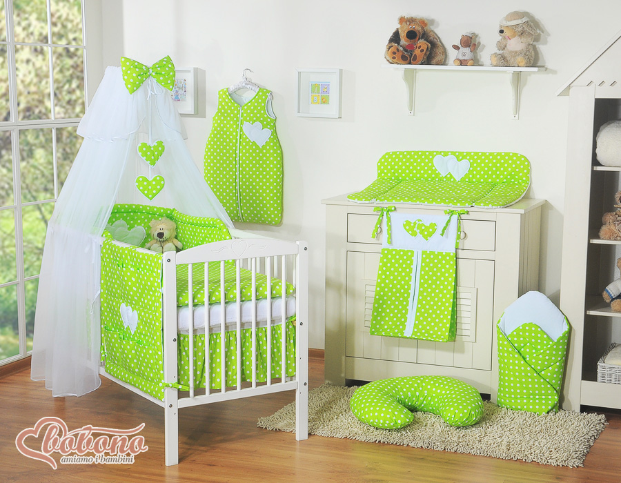 Bébé chambre » Linge de lit bébé » Linge de lit bébé Cœurs » Moustiquaire de lit bébé » Ciel de Lit en Moustiquaire Grand Format Vert à Pois Cœurs