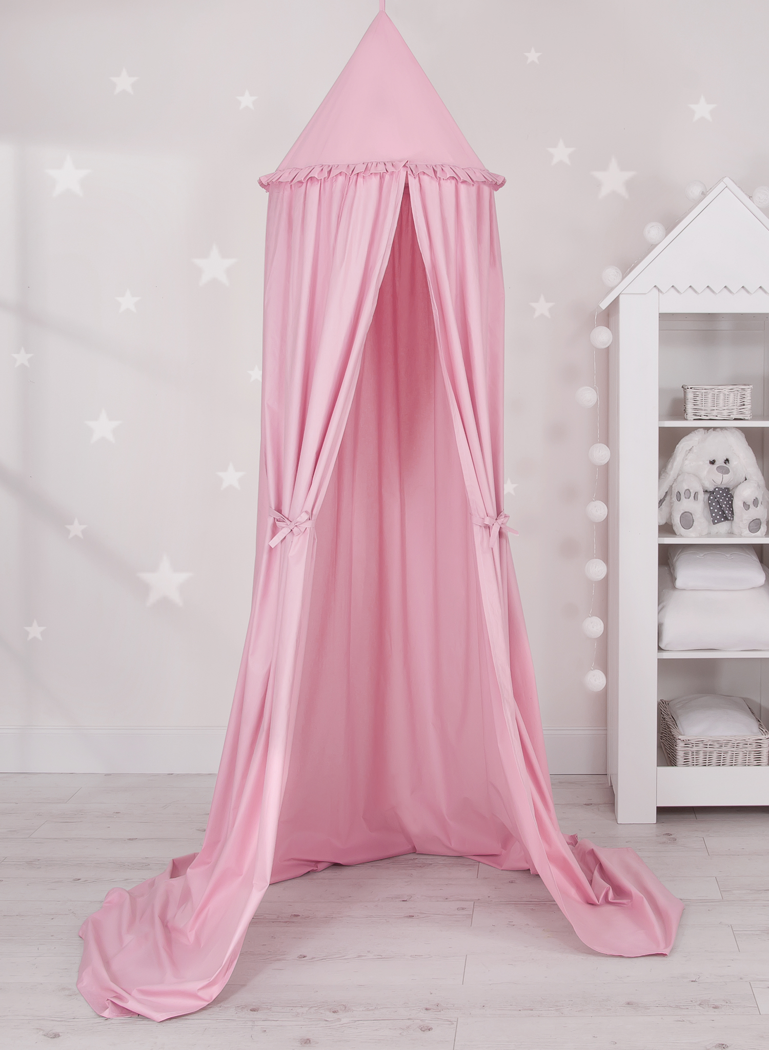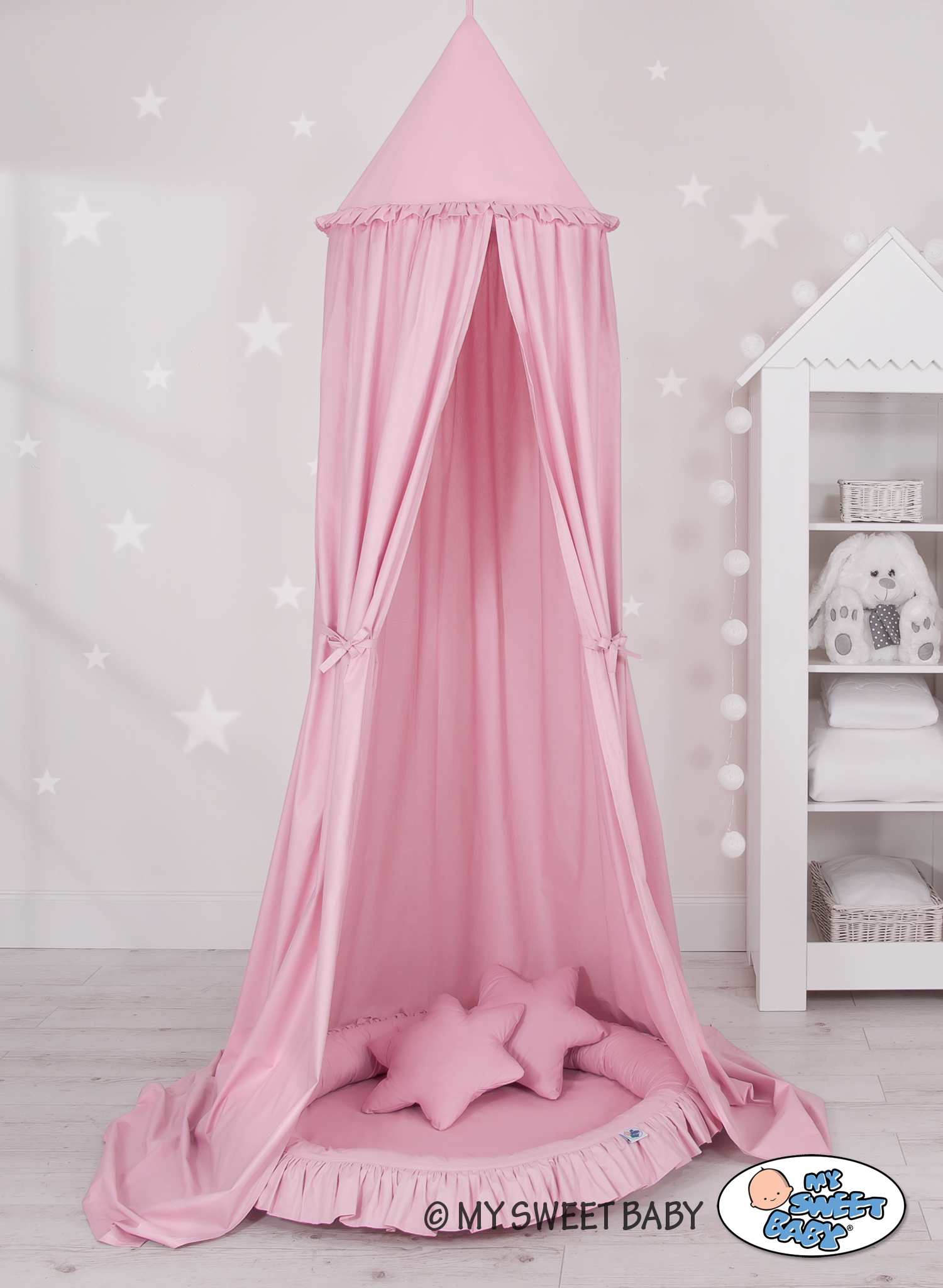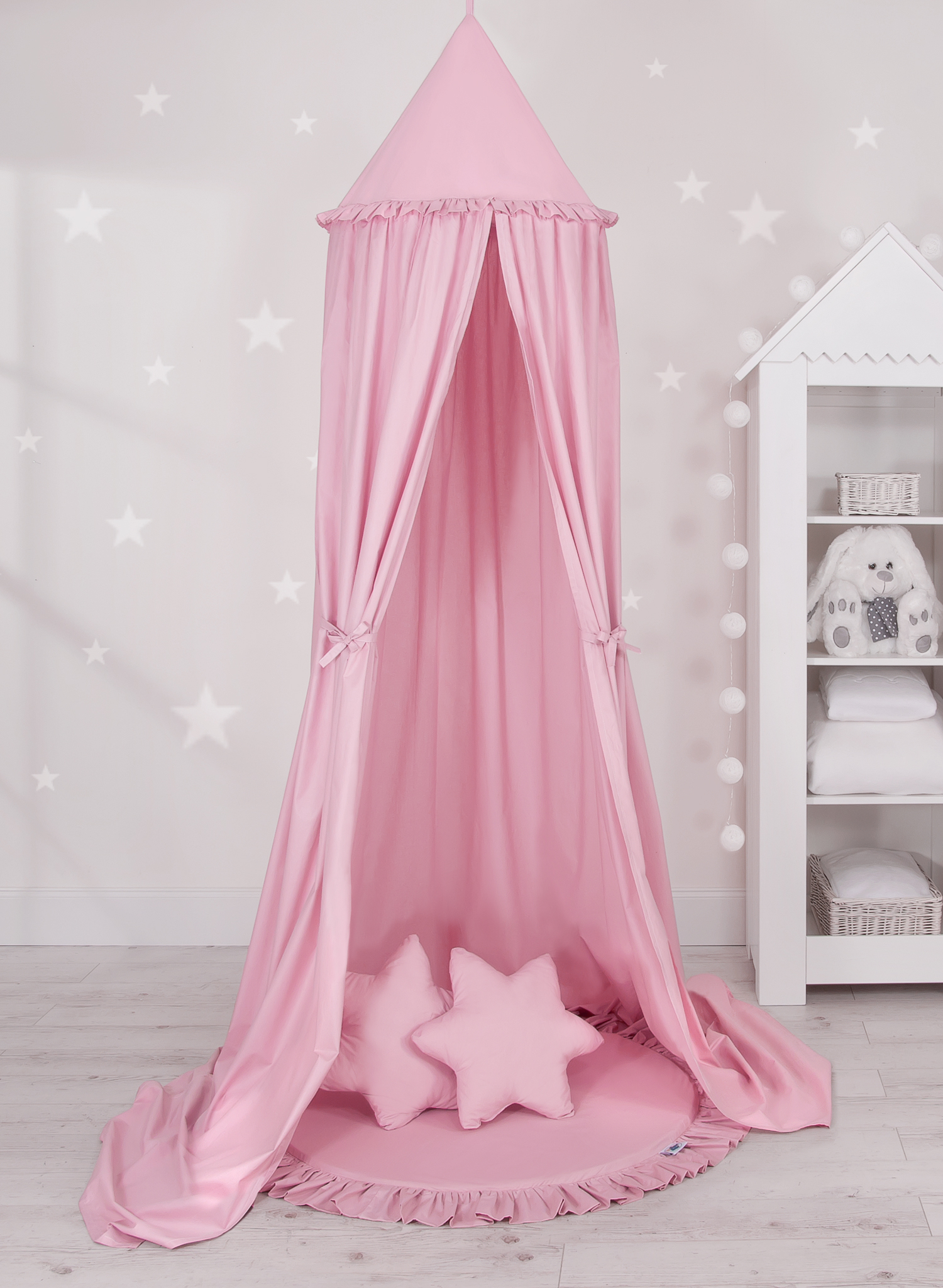 Un long baldaquin suspendu efficace. Un bel élément dans la chambre des enfants. Il peut être utilisé comme décoration unique d'un lit de bébé, tout comme il peut créer un endroit merveilleux pour jouer. La suspension au-dessus du lit protège contre les excès de lumière et de bruit, créant ainsi un endroit confortable et sûr pour se reposer à l'intérieur du lit. Le baldaquin peut facilement être fixé au plafond. La longueur de 260 cm permet de disposer les extrémités sur le sol. Cela crée une cachette parfaite et une aire de jeu pour les enfants plus âgés. Le baldaquin est fabriqué en tissu 100% coton certifié Okotex. Sur les côtés, il y a des rubans pratiques pour attacher le baldaquin et créer une belle tente. Le bord du haut peut être enlevé. Le tissu est lavable à 30 degrés.