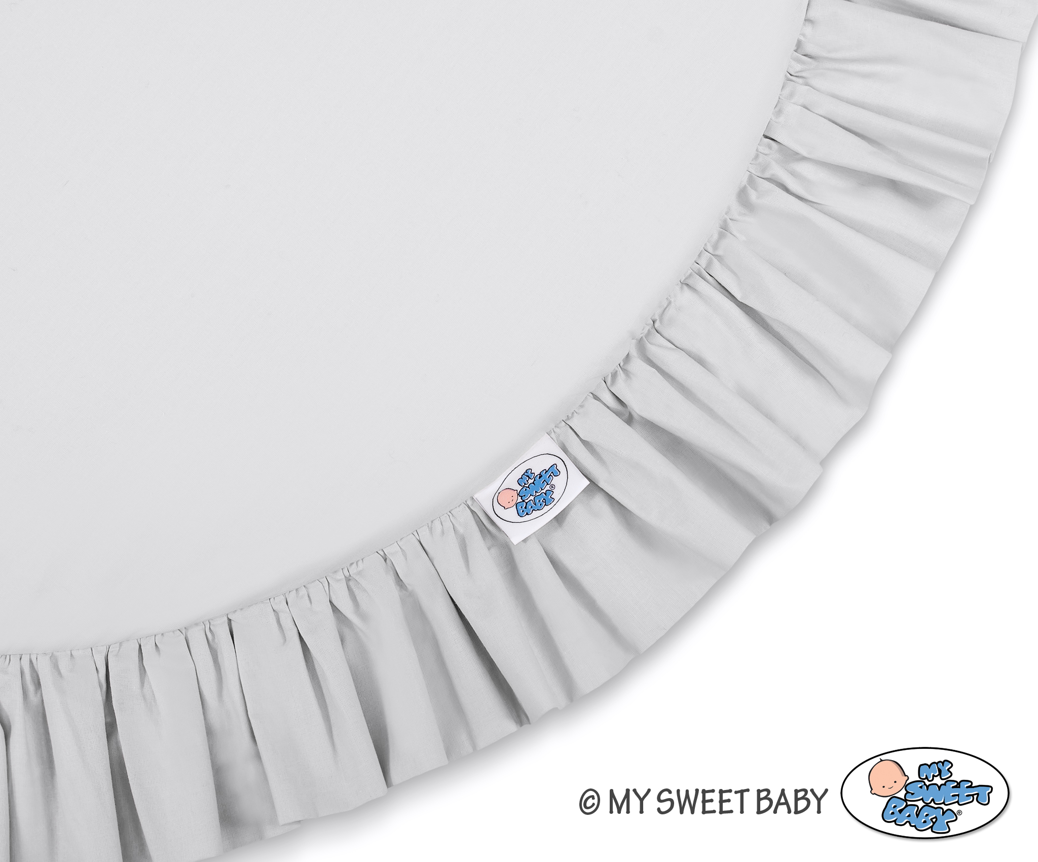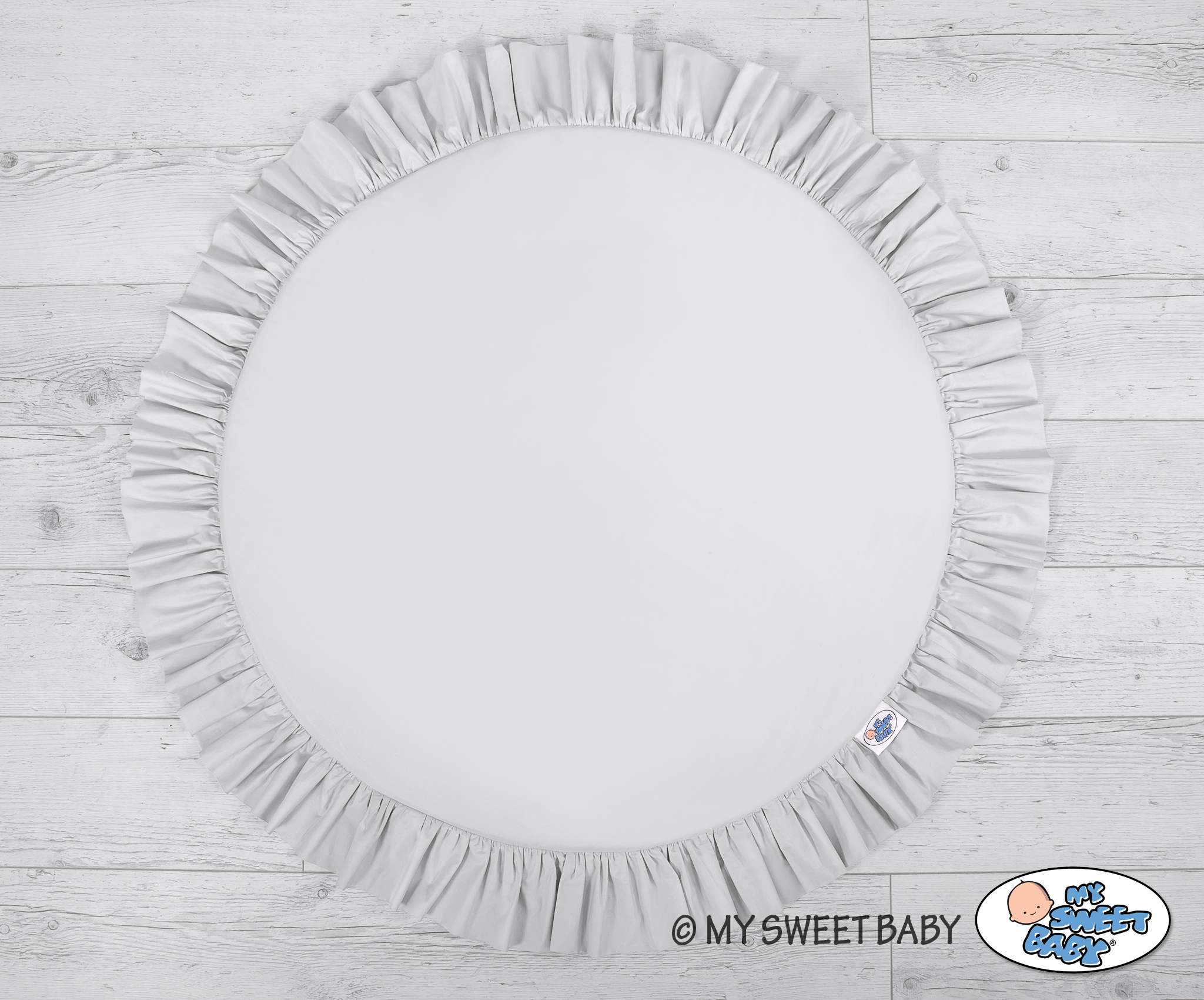 Un tapis de jeu de sol avec des volants. Il peut être utilisé comme tapis, tapis de jeu ou comme tapis de sol pour le long baldaquin. Dès les premiers jours de la vie, il peut être utilisé comme lieu de repos ou comme tapis de jeu pour le temps du passage sur le ventre. Il a un rembourrage souple qui l'isole parfaitement du sol dur et froid. La couverture est fabriquée en coton 100% certifié OKOTEX. Le dessous du tapis de jeu est fait d'un matériau moderne, antiallergique et attesté. Le fond peut être retiré et la couverture peut être lavée.