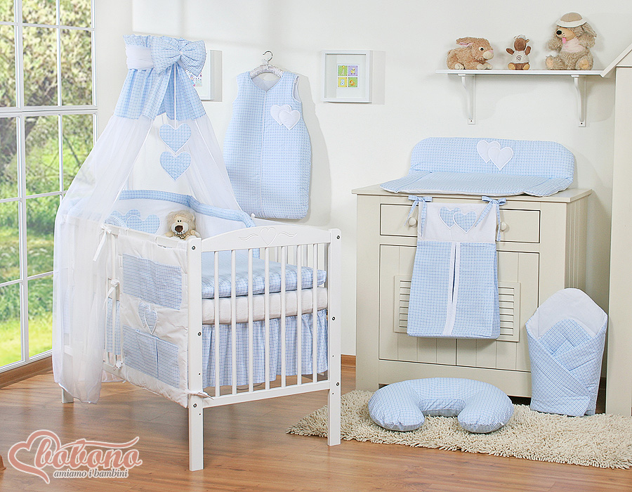 Bébé chambre » Linge de lit bébé » Linge de lit bébé Cœurs » Baldaquin en tulle » Ciel en Voile pour Lit de Bébé Bleu à Carreaux Cœurs