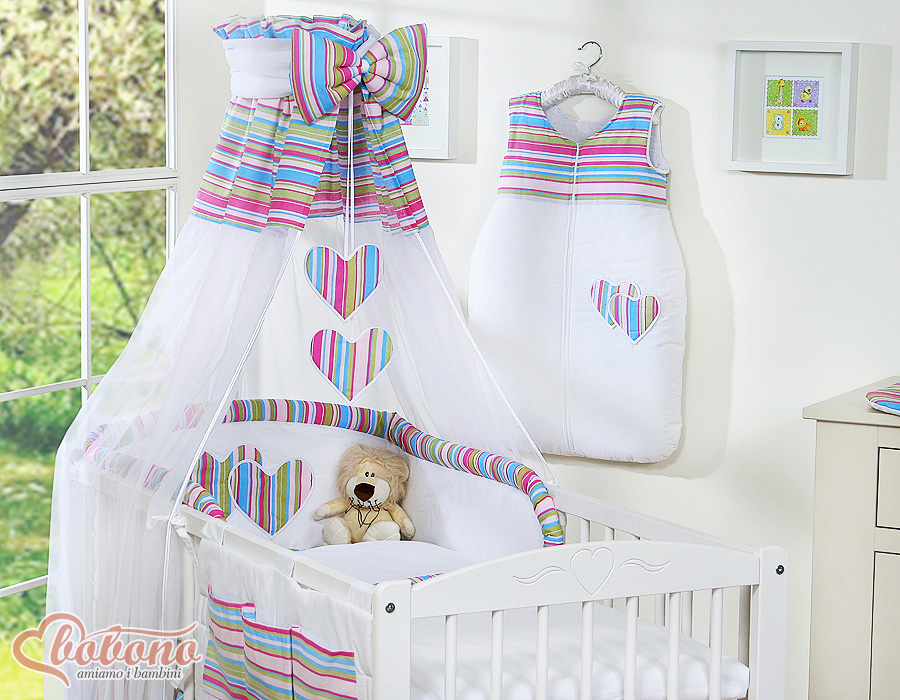 Bébé chambre » Linge de lit bébé » Linge de lit bébé Cœurs » Baldaquin en tulle » Ciel en Voile pour Lit de Bébé Lila Rayures Cœurs
