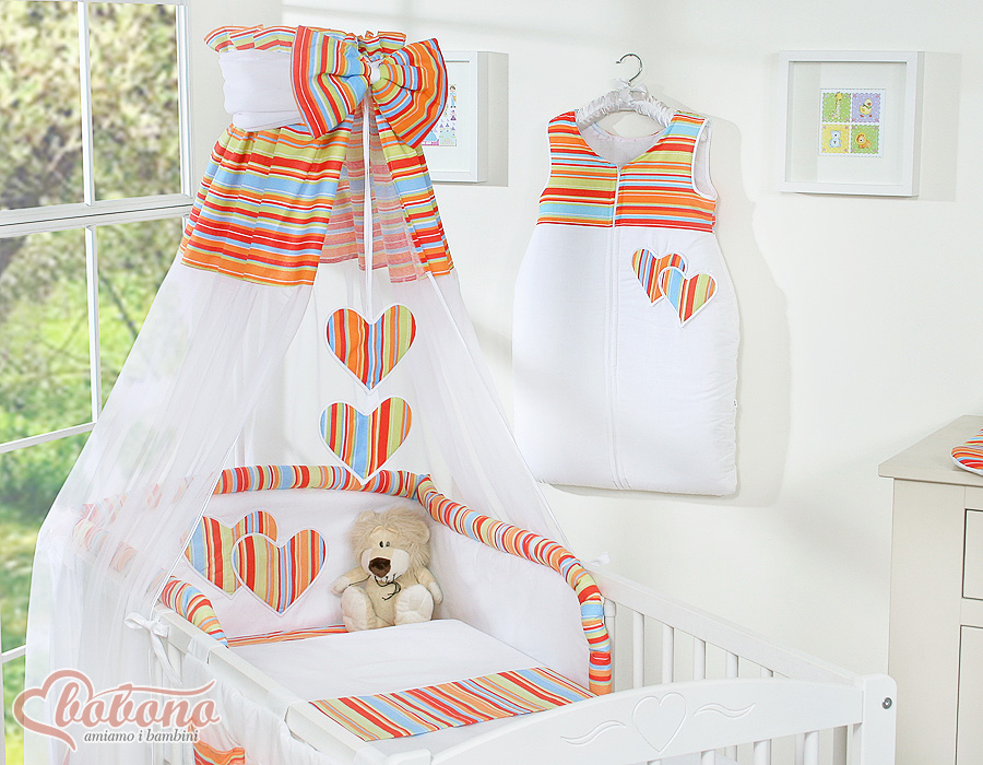 Ciel en Voile pour Lit de Bébé Orange Rayures CœursCiel en Voile pour Lit de Bébé Orange Rayures Cœurs