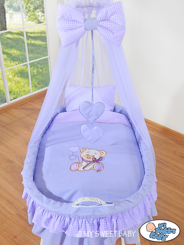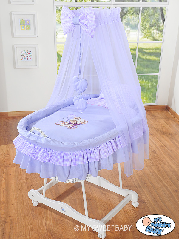 Bébé chambre » Berceau bébé » Berceau bébé à roulettes » Complet textile pour berceau osier avec ciel » Complet Textile pour Berceau de Bébé avec Ciel