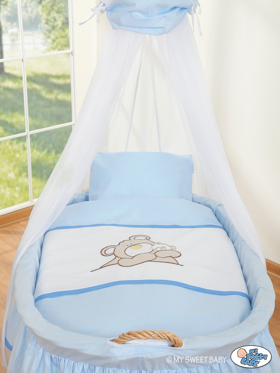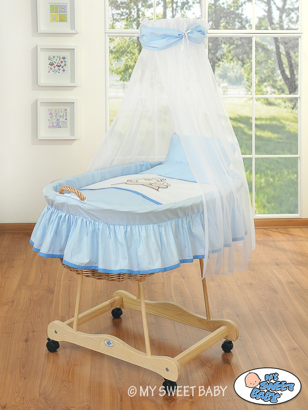 Bébé chambre » Berceau bébé » Berceau bébé à roulettes » Berceaux bébé en osier avec ciel » Couffin à Roulettes / Berceau à Baldaquin - Bleu Barnabé