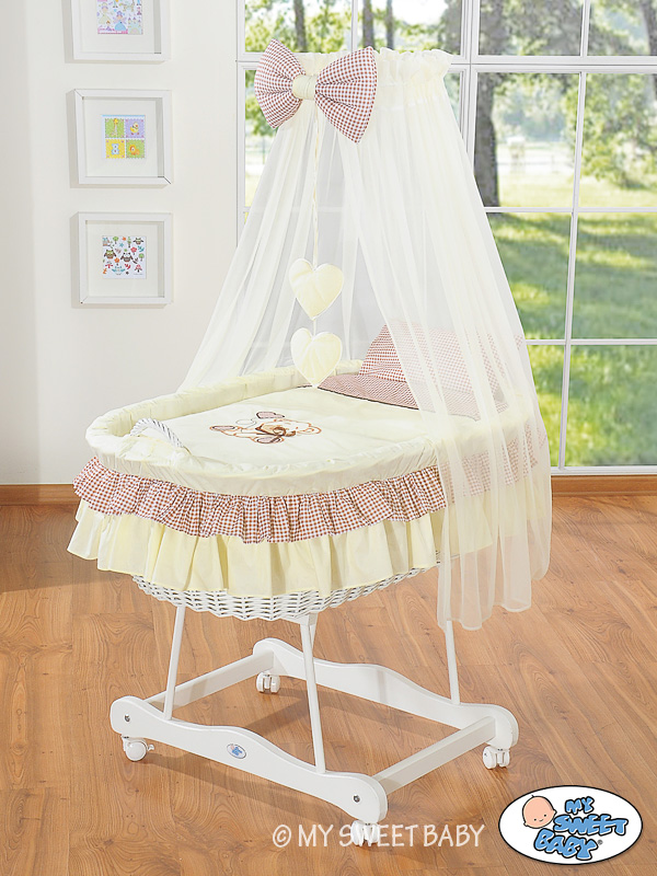 Bébé chambre » Berceau bébé » Berceau bébé à roulettes » Berceaux bébé en osier avec ciel » Couffin à Roulettes / Berceau à Baldaquin - Brun Papillon