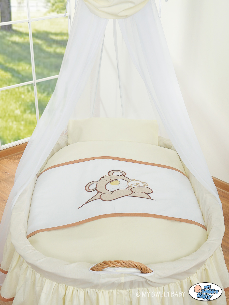 Bébé chambre » Berceau bébé » Berceau bébé à roulettes » Berceaux bébé en osier avec ciel » Couffin à Roulettes / Berceau à Baldaquin - Crème Barnabé