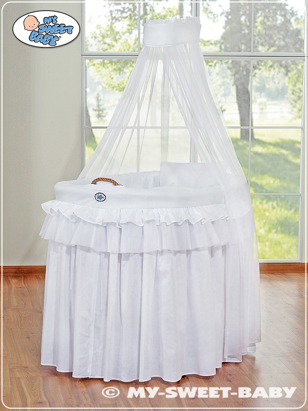 Bébé chambre » Berceau bébé » Berceau bébé à roulettes » Berceaux bébé en osier avec ciel » Couffin à Roulettes / Berceau à Baldaquin - Little Prince/Princess Blanc