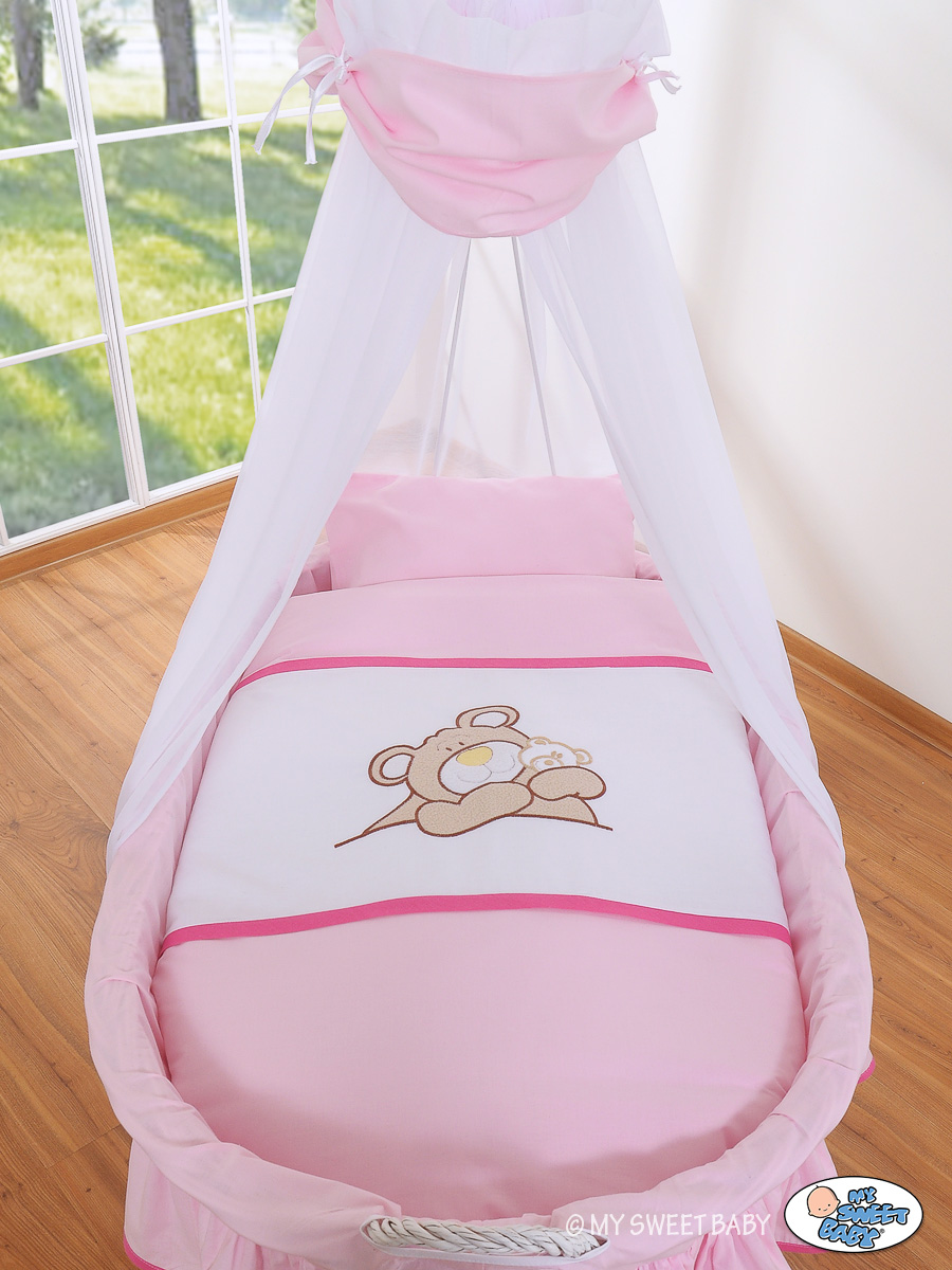 Bébé chambre » Berceau bébé » Berceau bébé à roulettes » Berceaux bébé en osier avec ciel » Couffin à Roulettes / Berceau à Baldaquin Rose Barnabé