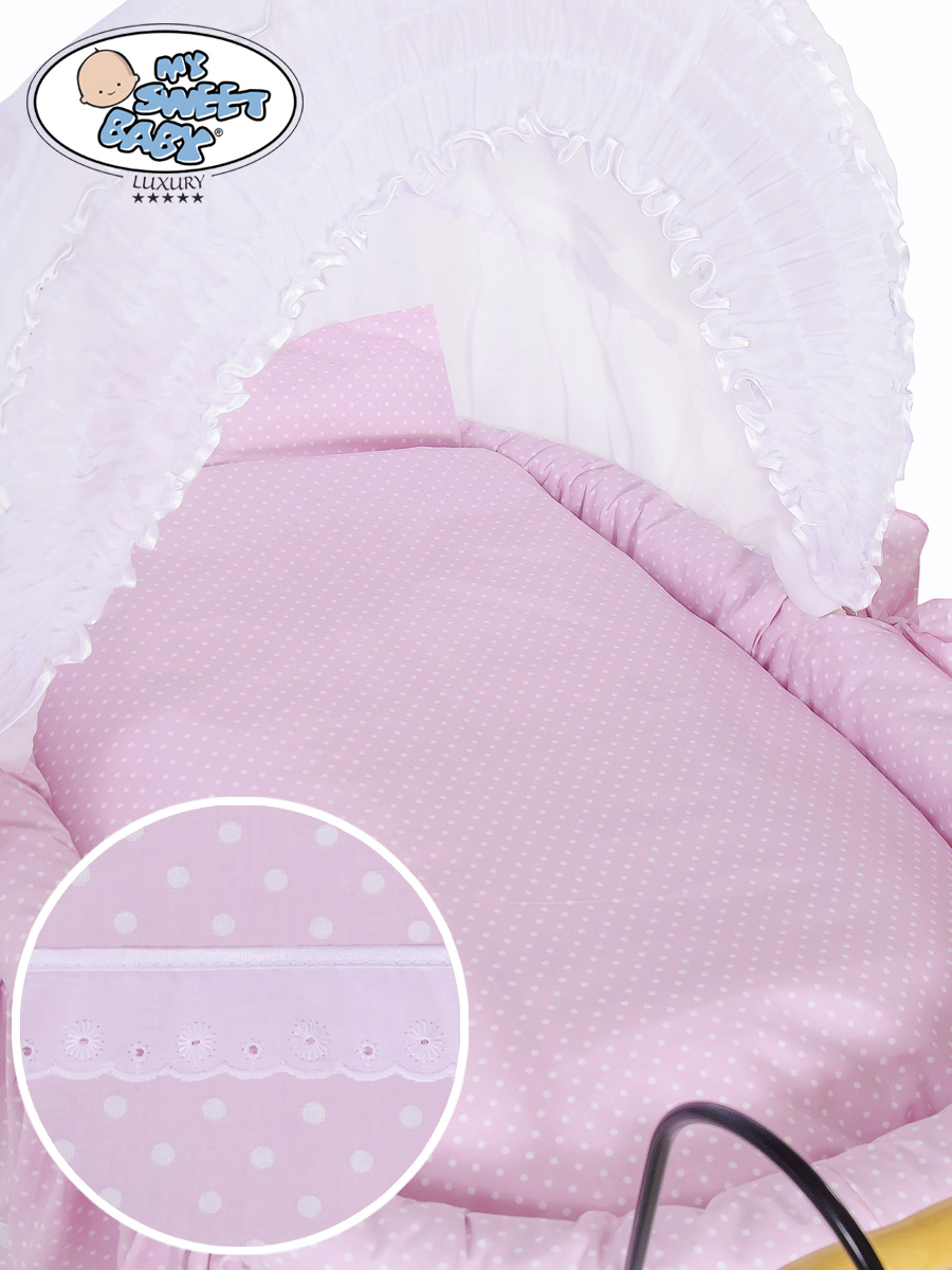 Bébé chambre » Berceau bébé » Berceau bébé rétro » Berceaux bébé rétro osier » Couffin Berceau Bébé Vintage Rose Blanc