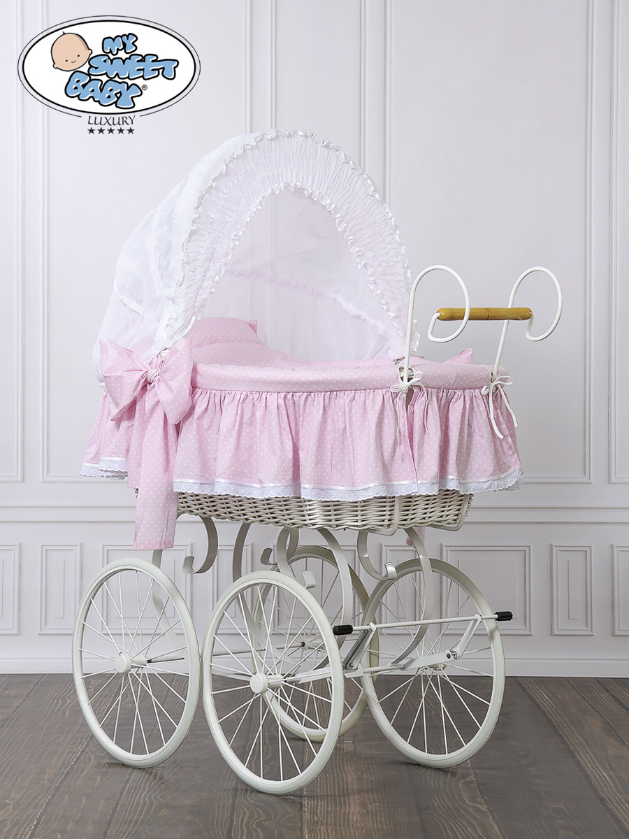 Bébé chambre » Berceau bébé » Berceau bébé rétro » Berceaux bébé rétro osier » Couffin Retro Rose Blanc Christine