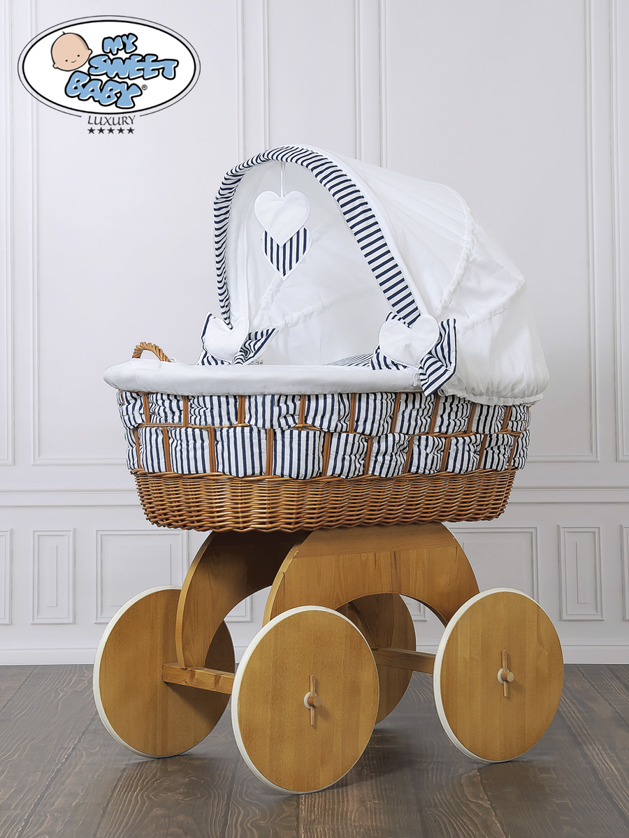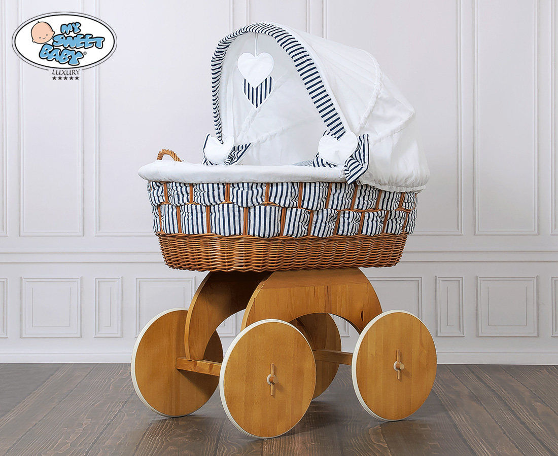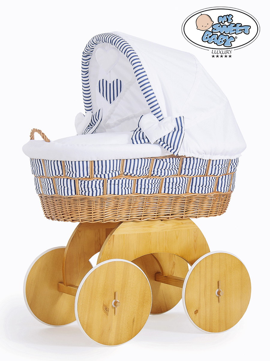 Couffin Sur Roues en Osier Naturel avec Canopy Marina Cœurs