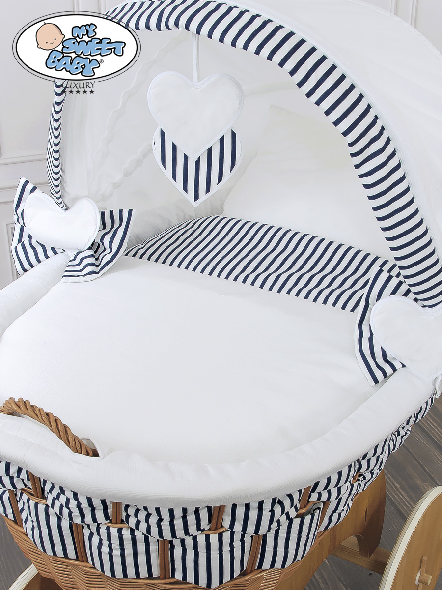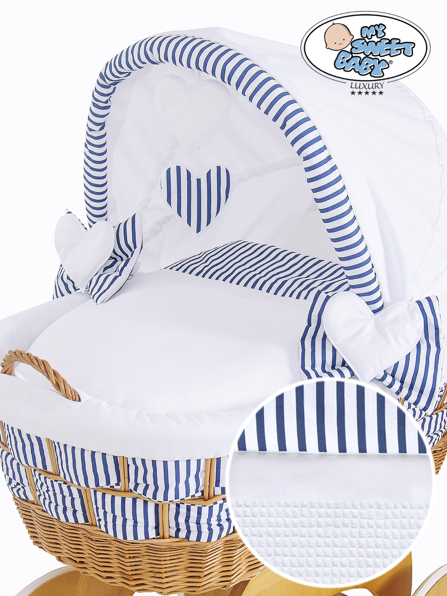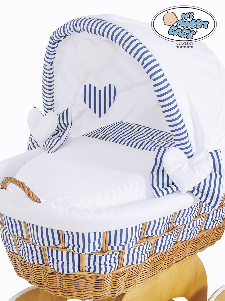 Bébé chambre » Berceau bébé » Berceau bébé My Sweet Baby Luxury » Berceaux avec canopy en osier » Berceau bébé avec canopy en osier » Couffin Sur Roues en Osier Naturel avec Canopy Marina Cœurs