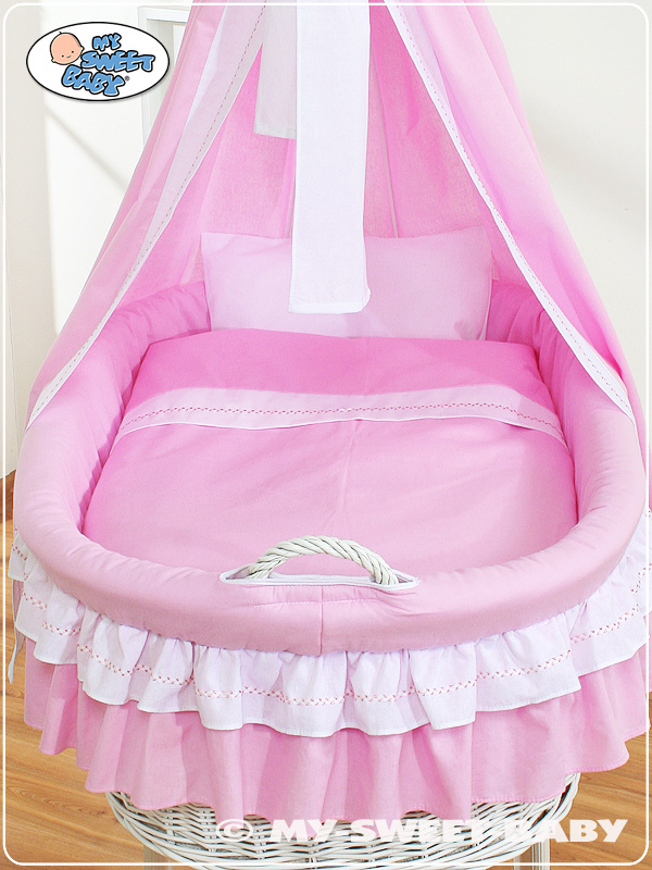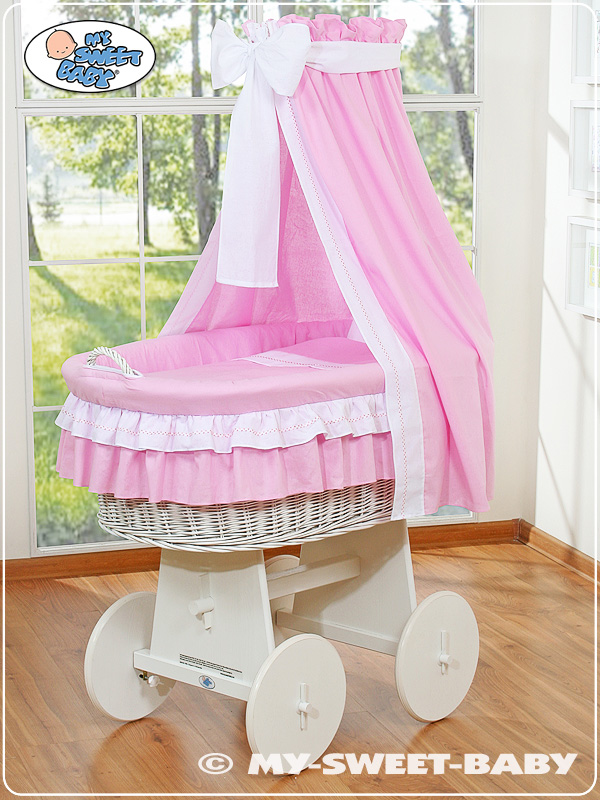 Couffin Sur Roulette / Berceau à Baldaquin en Osier Rose Bellamy