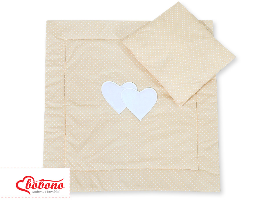 Coussin et Couverture pour Landau Bébé Beige à Pois CœursCoussin et Couverture pour Landau Bébé Beige à Pois Cœurs