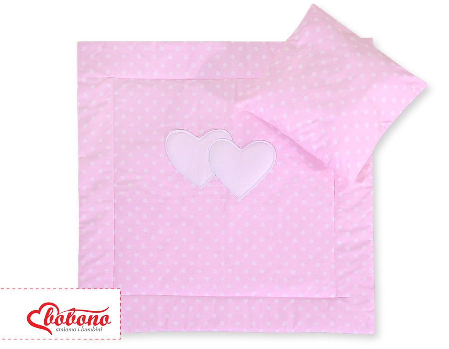 Coussin et Couverture pour Landau Bébé Rose à Pois CœursCoussin et Couverture pour Landau Bébé Rose à Pois Cœurs
