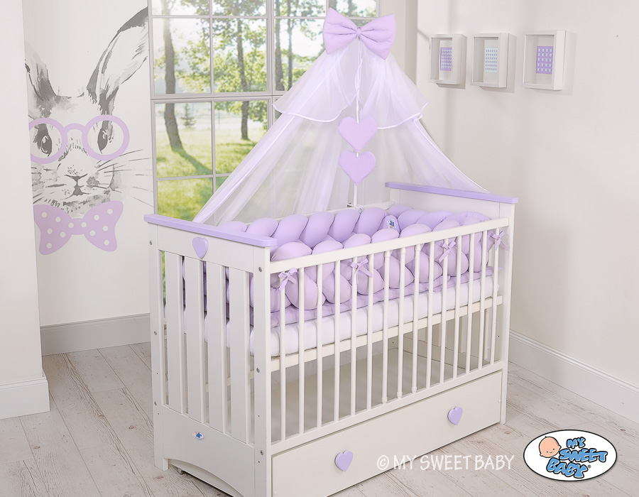 Bébé chambre » Collection tressé Magic Loop » Tours de lit tressé » Coussin Tressé Tour de Lit Extra épais à Long Noeud Oreiller XXL Lila