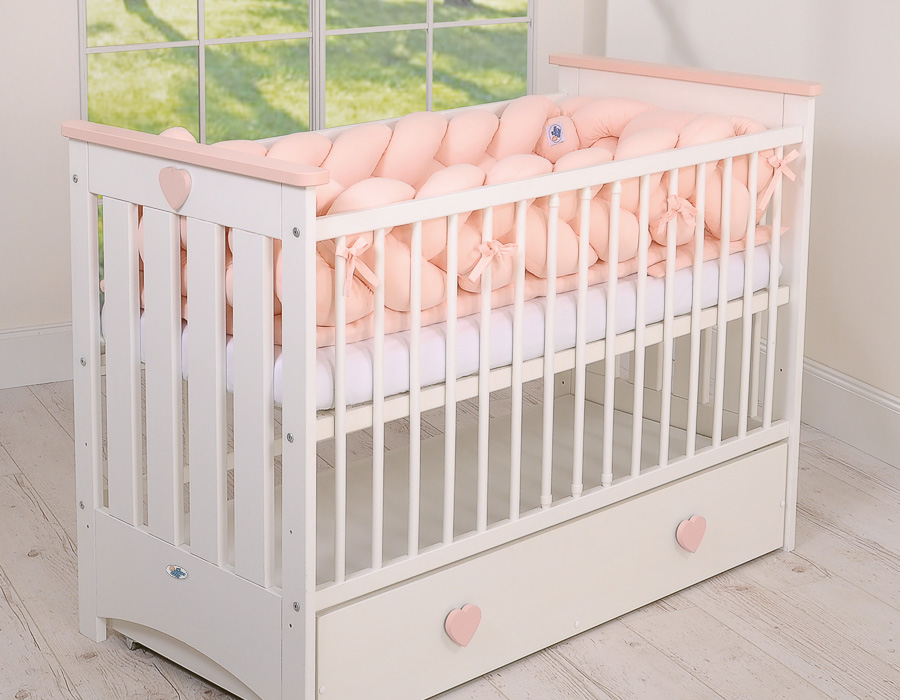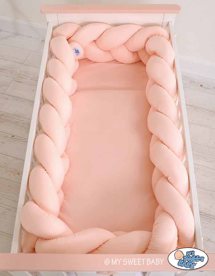 Magnifique tour de lit tressé très doux en 100% coton. Peut être fixé sur les barreaux.
