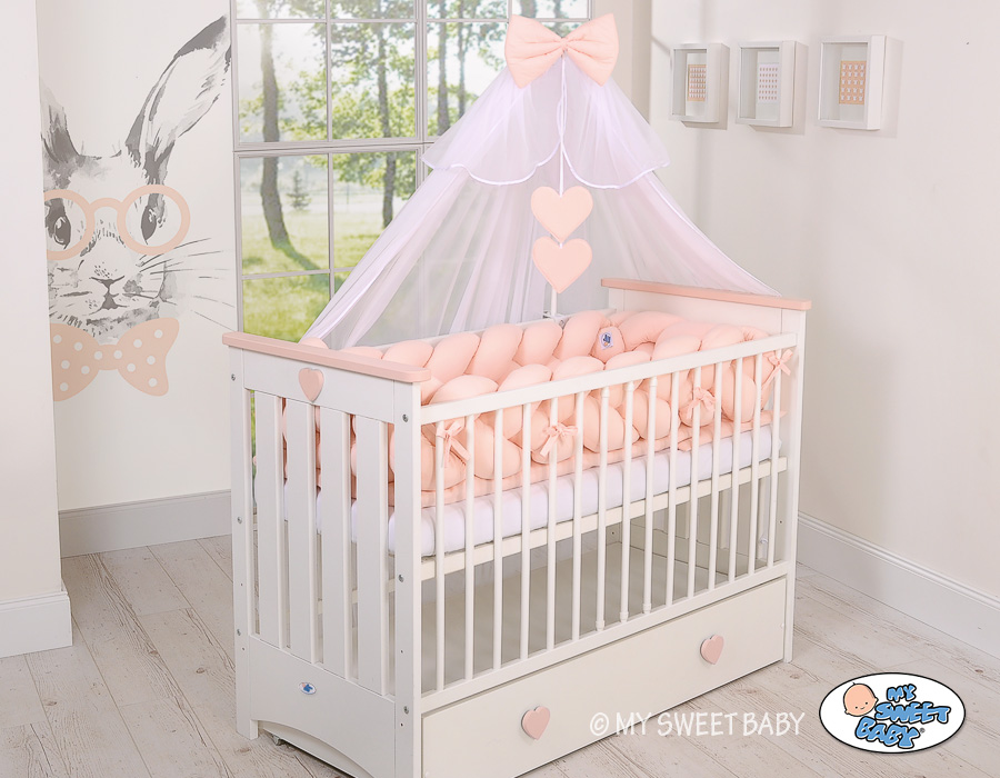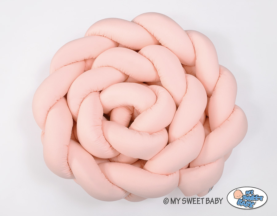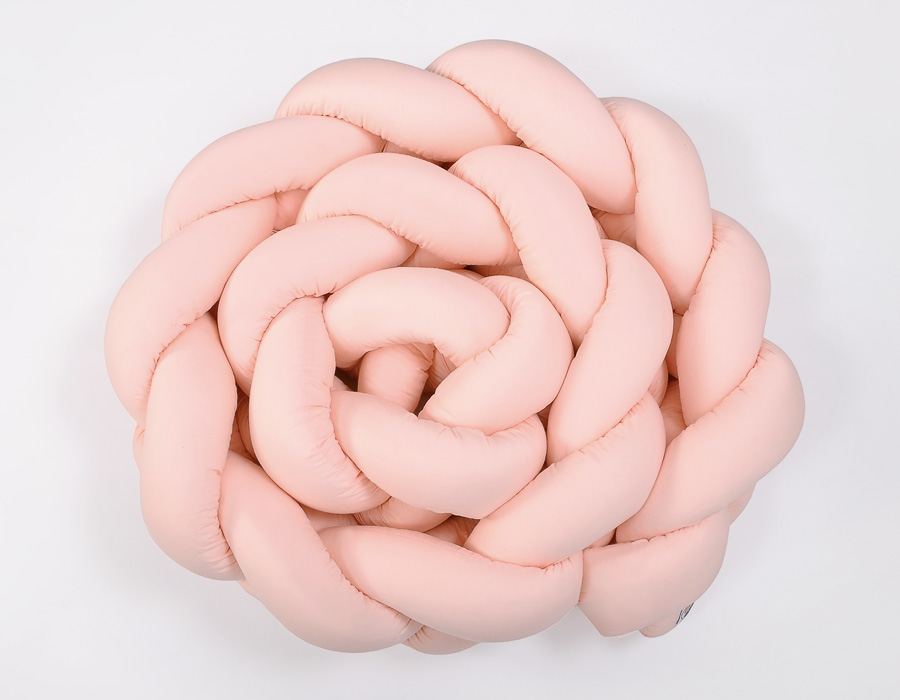 Bébé chambre » Collection tressé Magic Loop » Tours de lit tressé » Coussin Tressé Tour de Lit Extra épais à Long Noeud Oreiller XXL Rose Poudré
