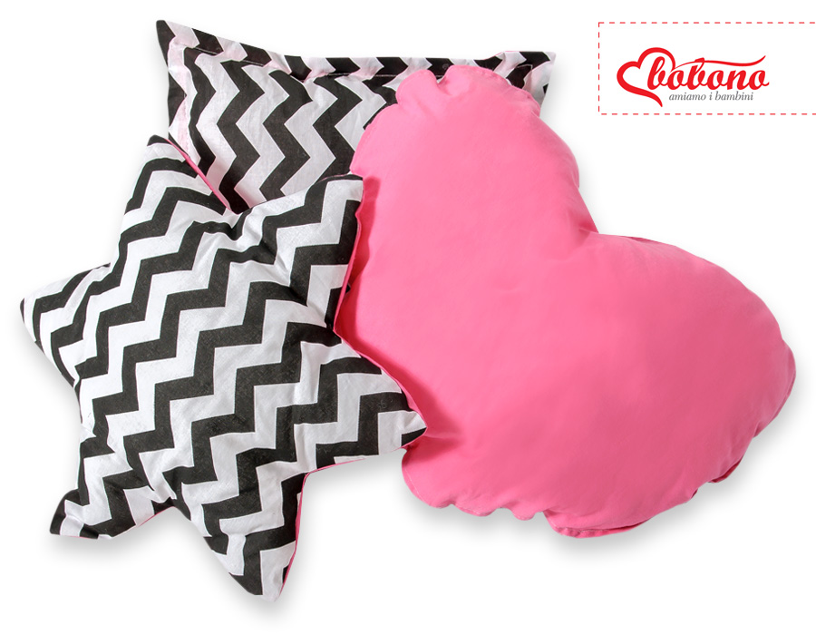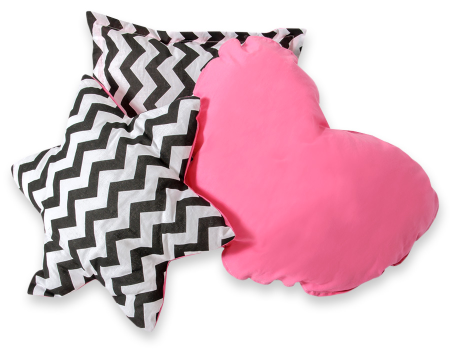 Des oreillers doux et moelleux, assortis à la couleur de la tenture. Chaque oreiller a une forme originale et décorative différente. Les coussins sont bicolores - chaque côté est fait d'un matériau différent. Ils sont également parfaits comme décoration colorée pour la chambre des enfants.