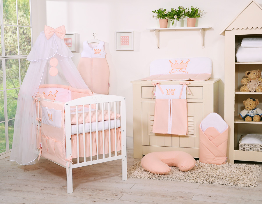 Bébé chambre » Linge de lit bébé » Linge de lit Little Prince / Princess » Linge de lit 120cm » Ensemble de linge de lit 11 pcs avec moustiquaire » Ensemble de Linge de Lit 11 pcs avec Moustiquaire Rose Poudré Little Princess