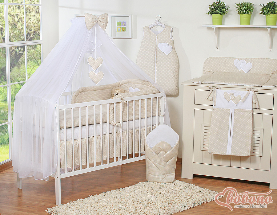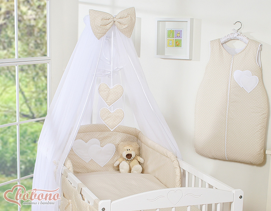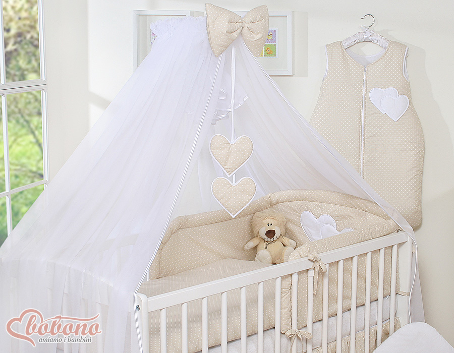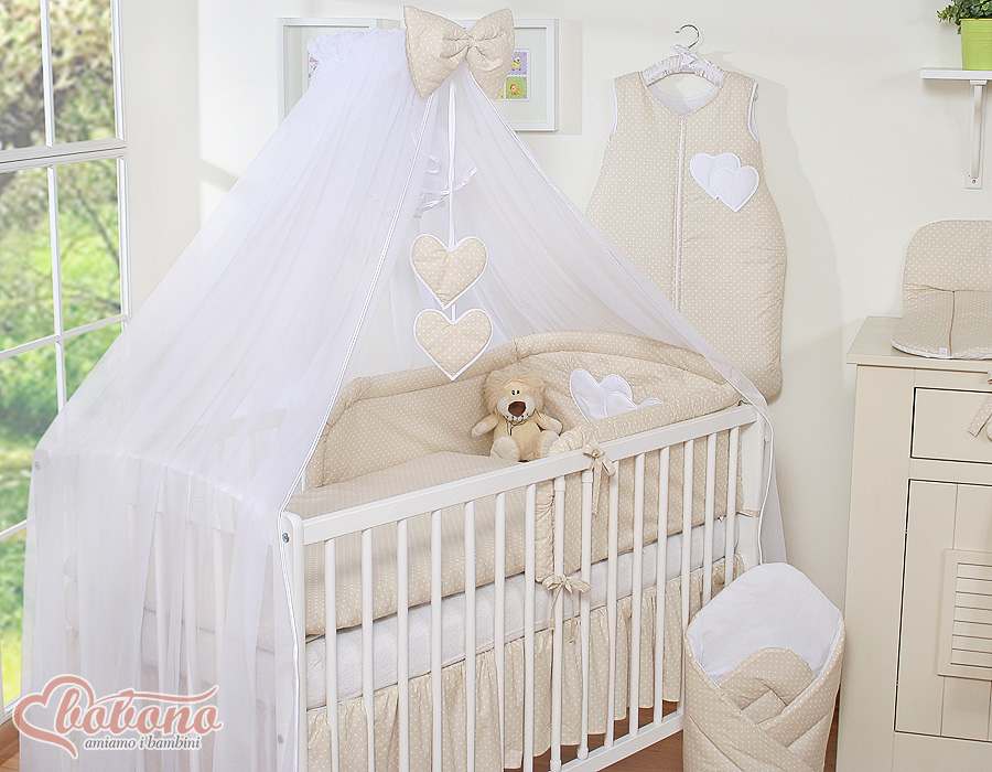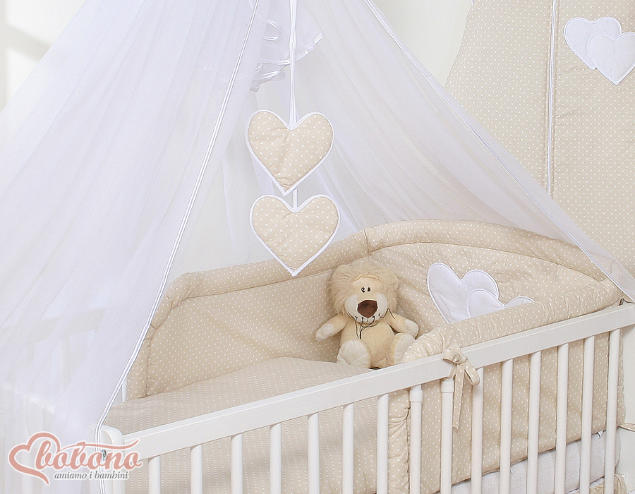 Bébé chambre » Linge de lit bébé » Linge de lit bébé Cœurs » Linge de lit bébé 120cm Cœurs » Ensemble de linge de lit 5 pcs avec moustiquaire » Ensemble de Linge de Lit 5 pcs avec Moustiquaire Beige à Pois Cœurs